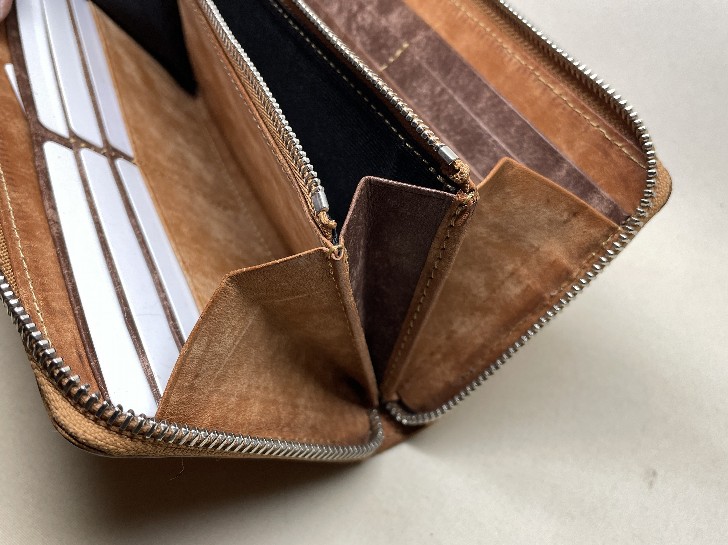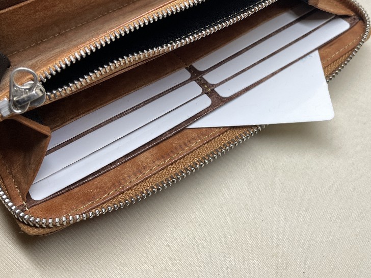 税込 35,900円 サイズ:19cm×10cm エレメントに入念な磨きをかけたYKK高級ファスナーEXCELLAを使用しております 皮革とステッチの色はこちらより選択できます。(例えば「カードポケットの一部だけを赤色に」など、組み合わせは自由にご指定頂けます。) ネーム入れ、装飾などのオプションを組み合わせる事もできます。 デザインや仕様の一部を自由にオーダー変更もできます。お気軽にお申し付けください。