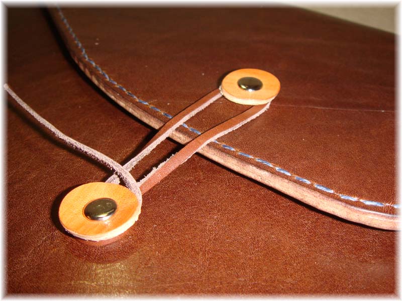 チョコ色のレザーに柿渋レザーのボタンを組み合わせております。