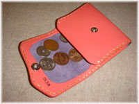 今回はピンクのヌメ革&紫のピッグスキンを使ったコインケース!!