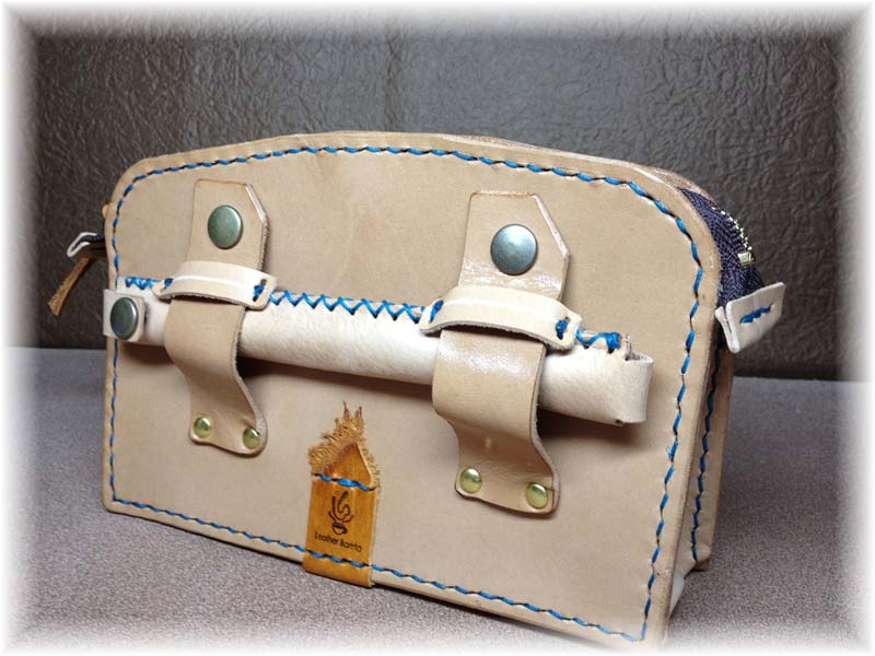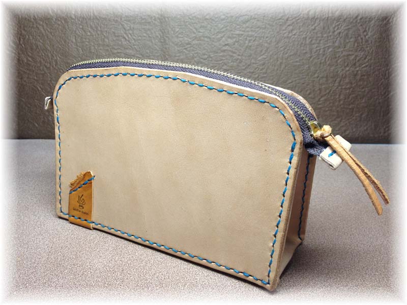 ヌメ革ならではの素材の馴染む楽しみをと、お使いになる化粧道具の収納位置を革に型付けるように「ガンガン使う化粧ポーチ」コンセプトにしました。