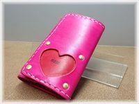 ハートのバックは赤のヌメを使用しており、ステッチは薄いピンクで仕上げました!