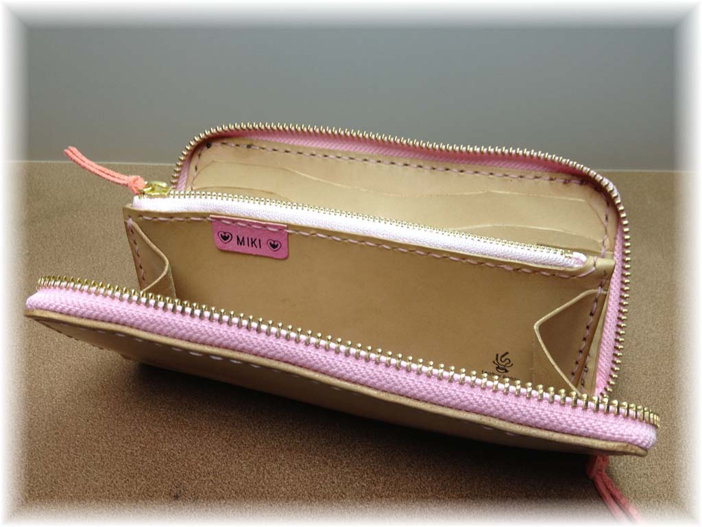 奥様は、ナチュラルサドル&ピンクステッチのラウンドファスナータイプです。