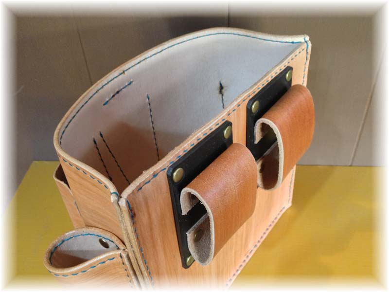 ベルトループ部分には重い道具に耐えられるように、樹脂製の板を補強しました。