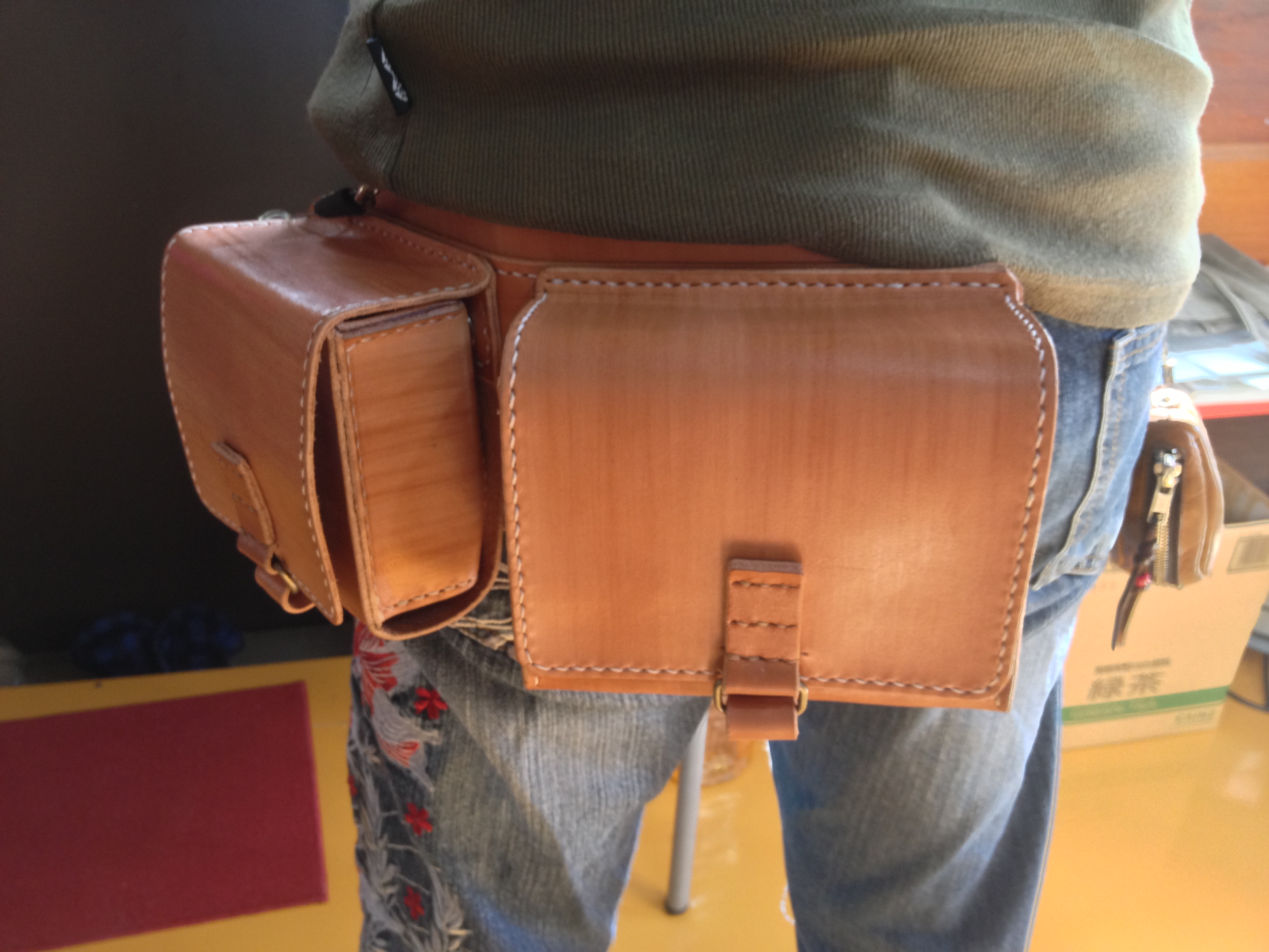 今回のオーダーは、レザーバリスタでもウェストハングバッグやダーツケースでも使用している技術を応用しまして製作した「ヒップバッグ」をご紹介いたします。