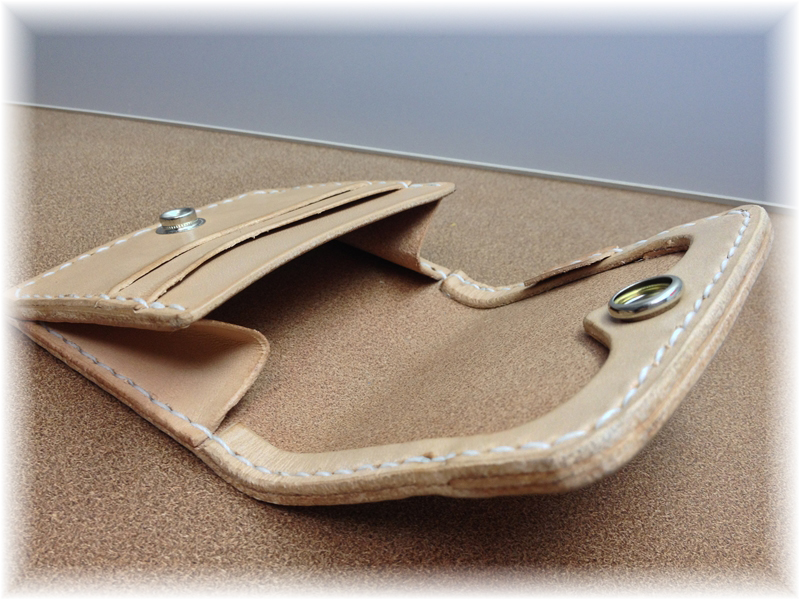 独立カードポケットが前胴に2ついており、向段にはコインが落ちにくいように革の壁を作っております。