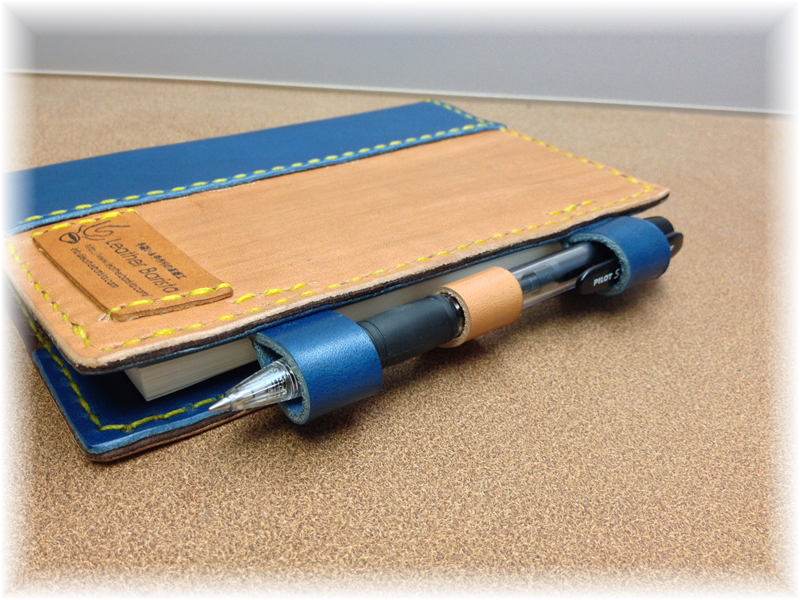 ペンホルダー部分は本が開かないように交互にし、ペンをホールドする工夫を施しております。