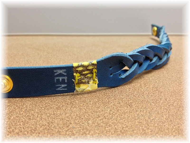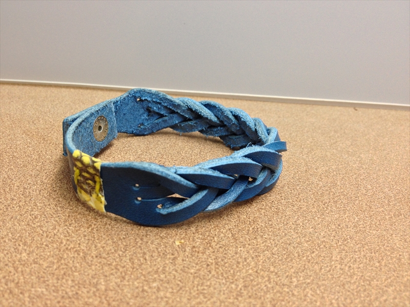 レザーバリスタの定番商品でもある ブレスレット にお金が貯まると言われているヘビ革をあしらってみました。