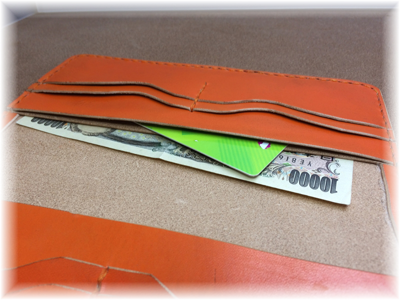 オレンジカラーのレザーにオレンジステッチがとてもよく映えております。