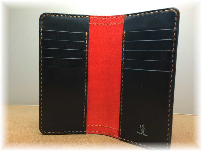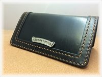 シンプルなロングウォレットですが、外革の周囲は一枚革でインレイしております。