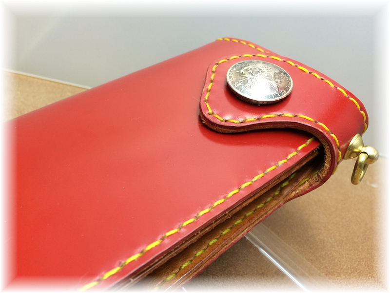表革は赤のコードバンを使用しまして、内革はキャメルのサドルを使用しております。