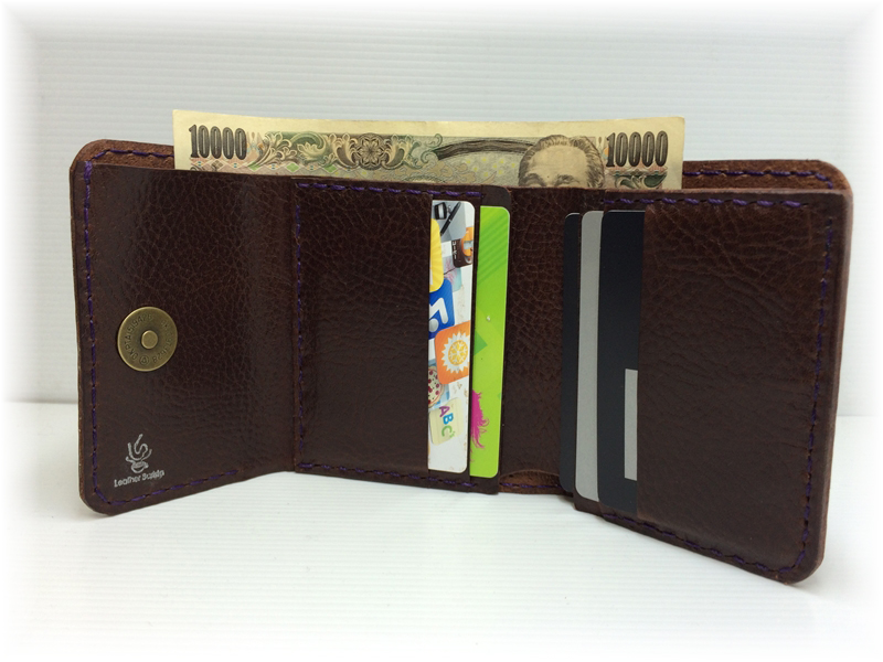 小銭スペースを外部に出す事により実現した、出来るだけ大きさをカードサイズに近くしたコンパクトな三つ折り財布です。