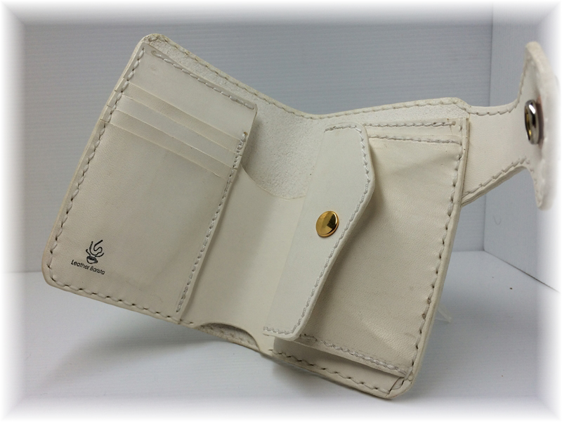 定番商品の「ミディアムウォレット フラップ」を純白で仕上げております。