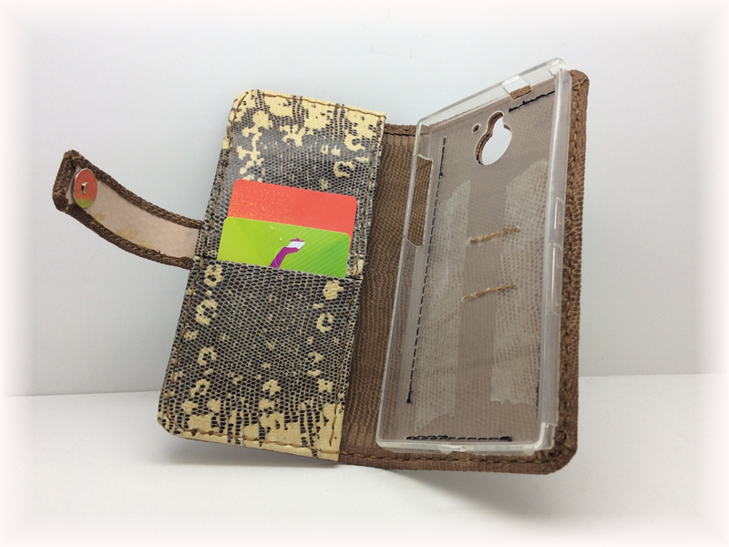 ・こちらはリザードの皮革を外装、内装で二種類使いました。