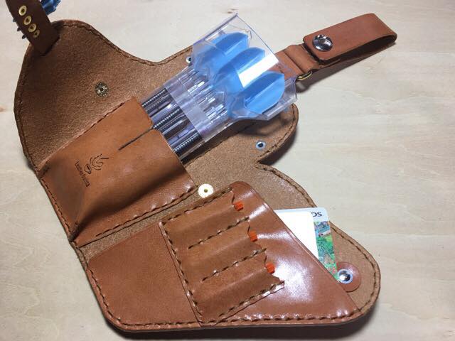 ダーツケース ダーツケース/グッズ 2017.09.19 当店ではダーツケースも作っています! オールベジタブルタンニンレザー&手縫いならではの高級感と革の味わいをぜひお試し下さい! ダーツケースは長く使う物でもあるので、耐久性大抜群のレザーケースはいかがでしょうか?(^^) 様々なオプションを施す事で、世界に一つだけのダーツケースをお作り出来ます。