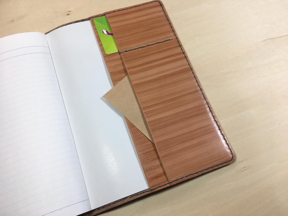 柿渋染め ノートカバー ステイショナリー/手帳 2017.09.19 ノートカバーです。柿渋を染め上げるのに天日干しで5日ほどかかります。 濃淡を出すために濃度が濃くなったらまた塗りを繰り返す作業で生まれたレザーは中々見られない模様を生み出します。