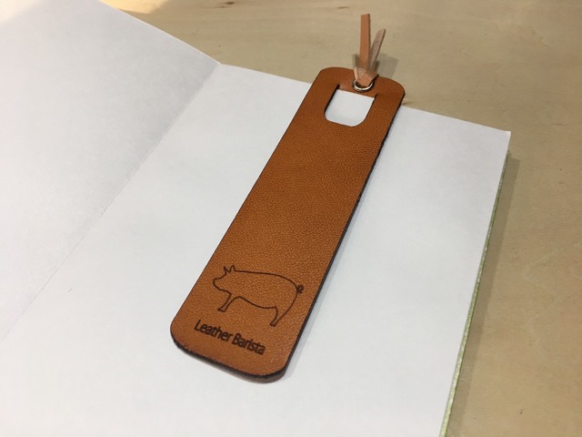 革のしおり 豚のイラスト 本革 レザー