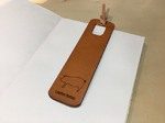 栃木レザーヌメ革 キャメル色 のしおりです。しおり本体に切り込みが入っているので本のページに固定して止める事ができます。