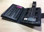 ケース自体は部品より一回り小さく作り、レザーの弾力で固定をしております。