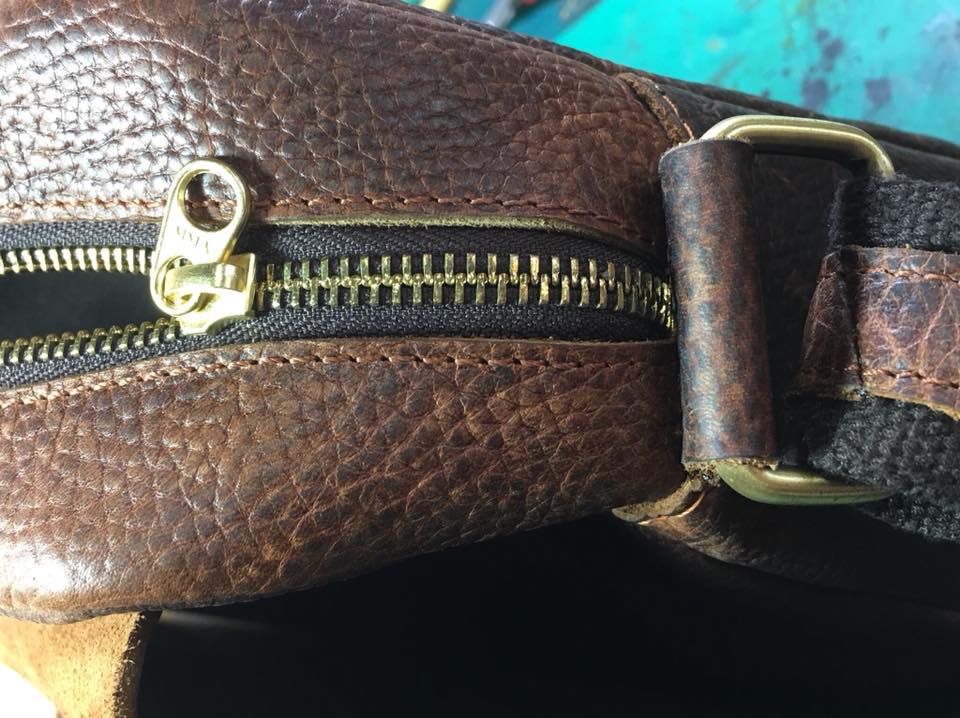 ファスナーの付け根部分が解けてしまって、ファスナーのスライダーもなくなってしまっていたバッファロー革のショルダーバッグです。