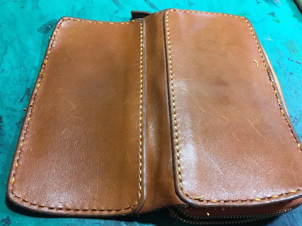 私物のラウンドファスナー財布 お財布 2018.06.25 私物のラウンドファスナー財布です。 試したいレザーがありましたので表革を張り替えました。 さて、、その試したいレザーは2枚目です。 これがどうなるのかはまた明日写真載せます!