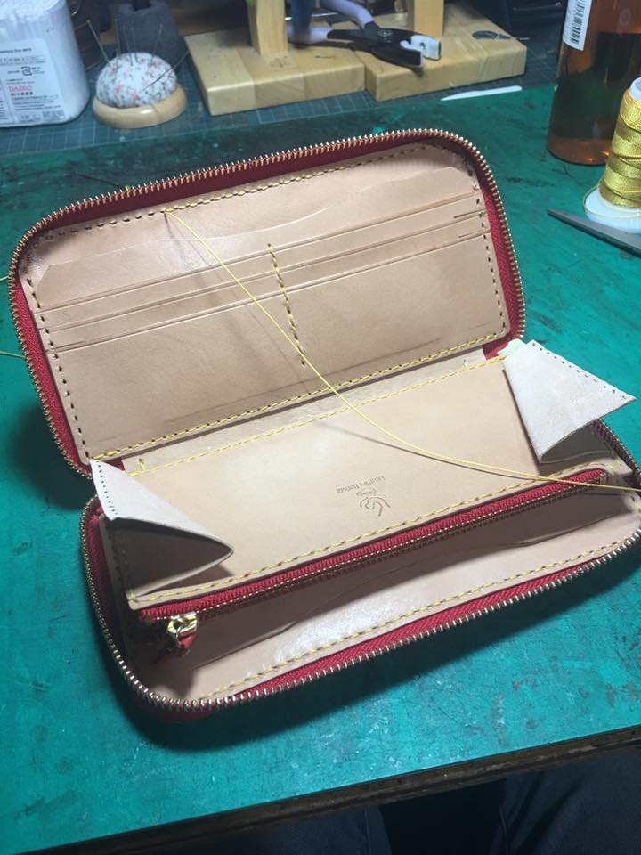 ラウンドファスナーも手縫いです。