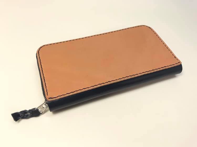 お財布スリートーンカラーで仕上げたラウンドファスナーのお財布。