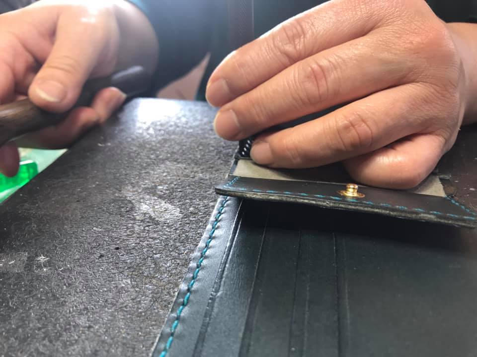 革教室、ワークショップを行いました。 ワークショップ・教室 2019.02.25 本日は革教室、ワークショップを行いました。何度も通って頂いているおふたり様なので、私ともとても仲良しになっておりリラックスして製作できました。だんだんと私が教える事も数少なくなってきまして、自ら進んで製作している姿をみて教室の効果をびっくりしております! お財布とパスケースを完成しました!とても楽しい時間をすごせまして感謝しております!