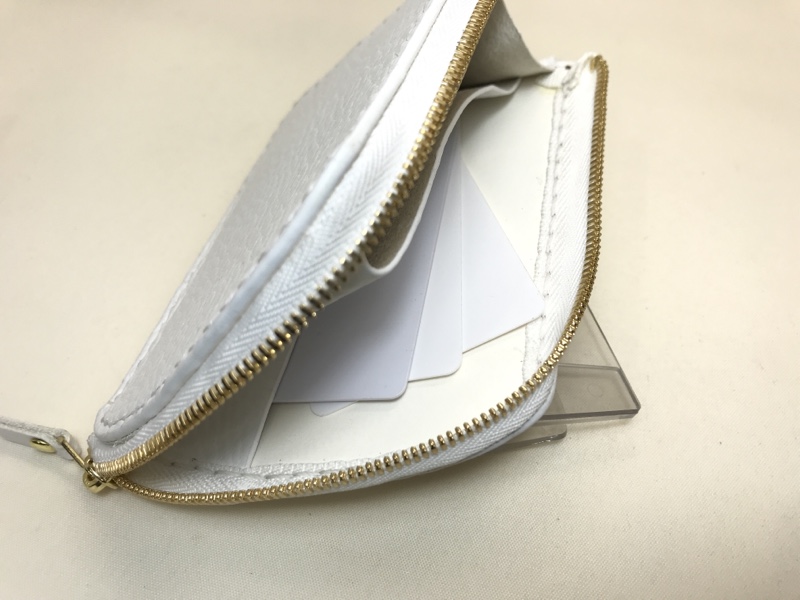 お札半分のサイズですがカード、小銭も収納できる万能なファスナー財布です。