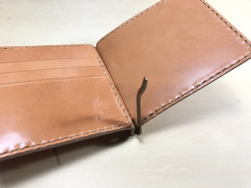 シンプルなマネークリップ付きの二つ折り財布です。