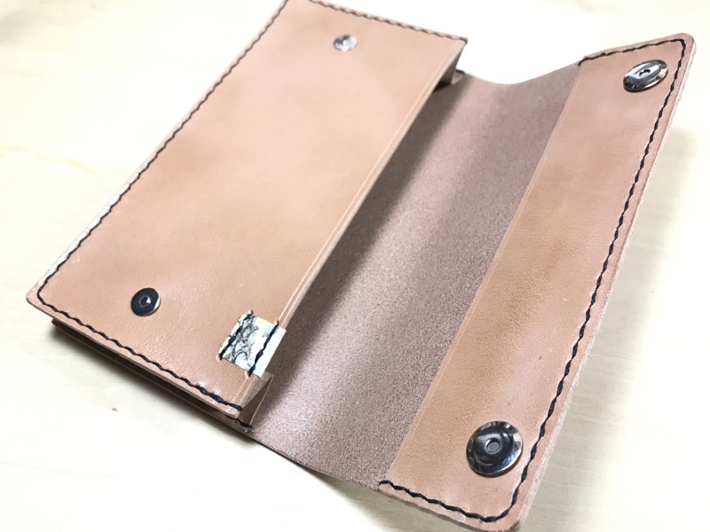 200枚収納可能です お財布 2020.02.28 200枚くらいお札の入るシンプルなお財布のオーダーを頂きました。 ワンポイントに金運や運気が上がると言われている蛇革をさりげなくあしらいました。 マチは全体を通して作ってありますので、厚みのあるお札でもぴったりと収まります。 経年変化をより分かりやすく楽しめるナチュラルカラーのレザーを使いました。