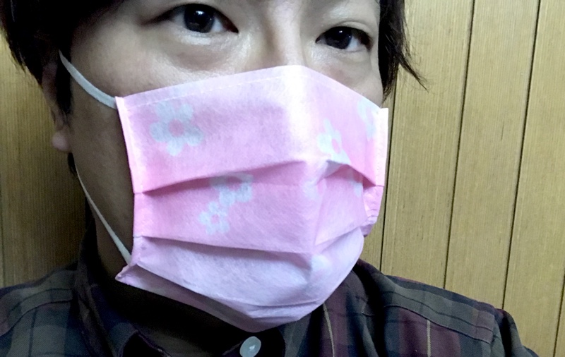 桜の花の模様が入ったグラデーションピンクのマスクを作ってみました。