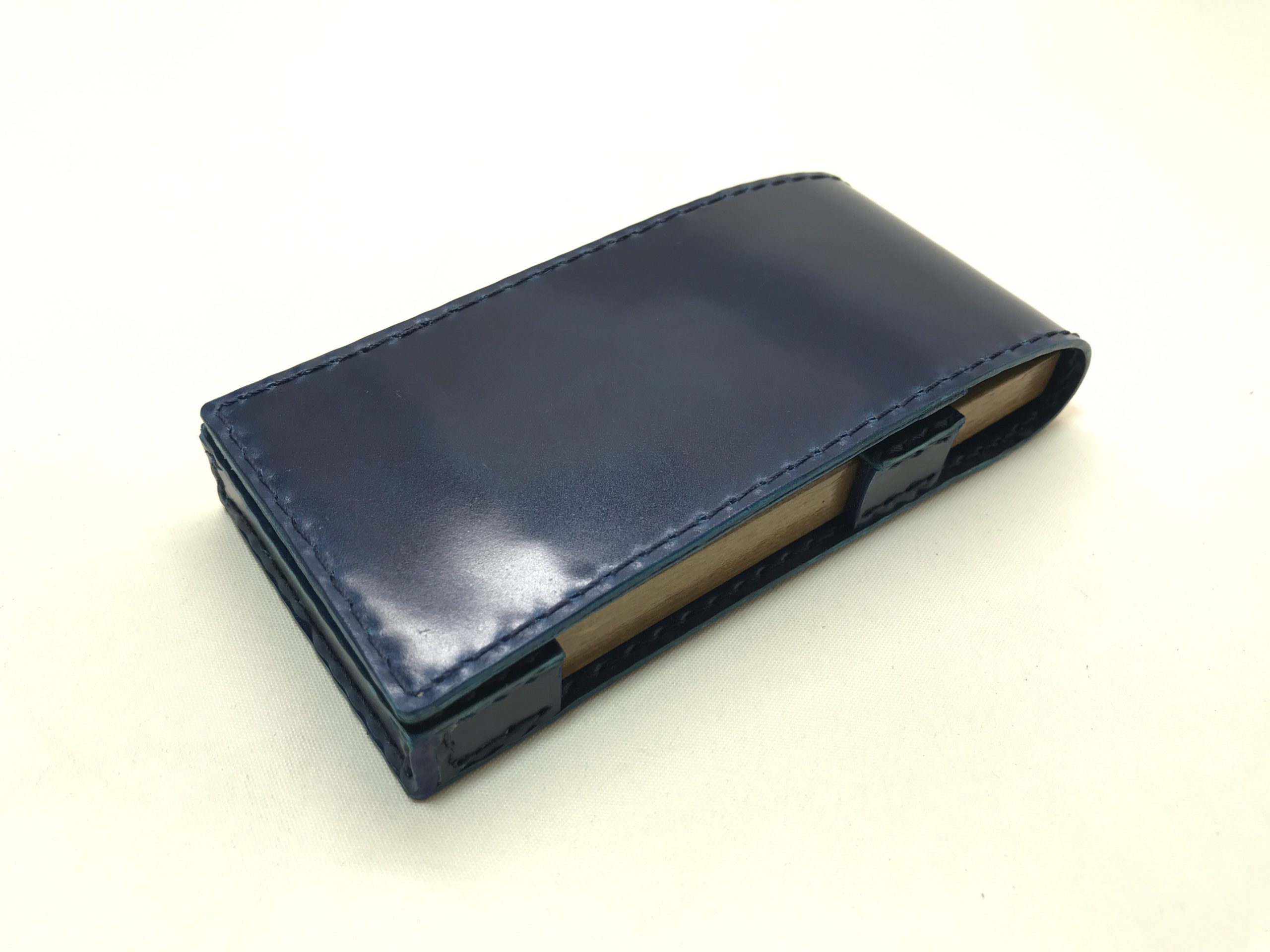 その仕上がりにお応えする様に、革のダイヤモンドと呼ばれる最高級素材の国産コードバンを使用した二つ折りケースを作りました。