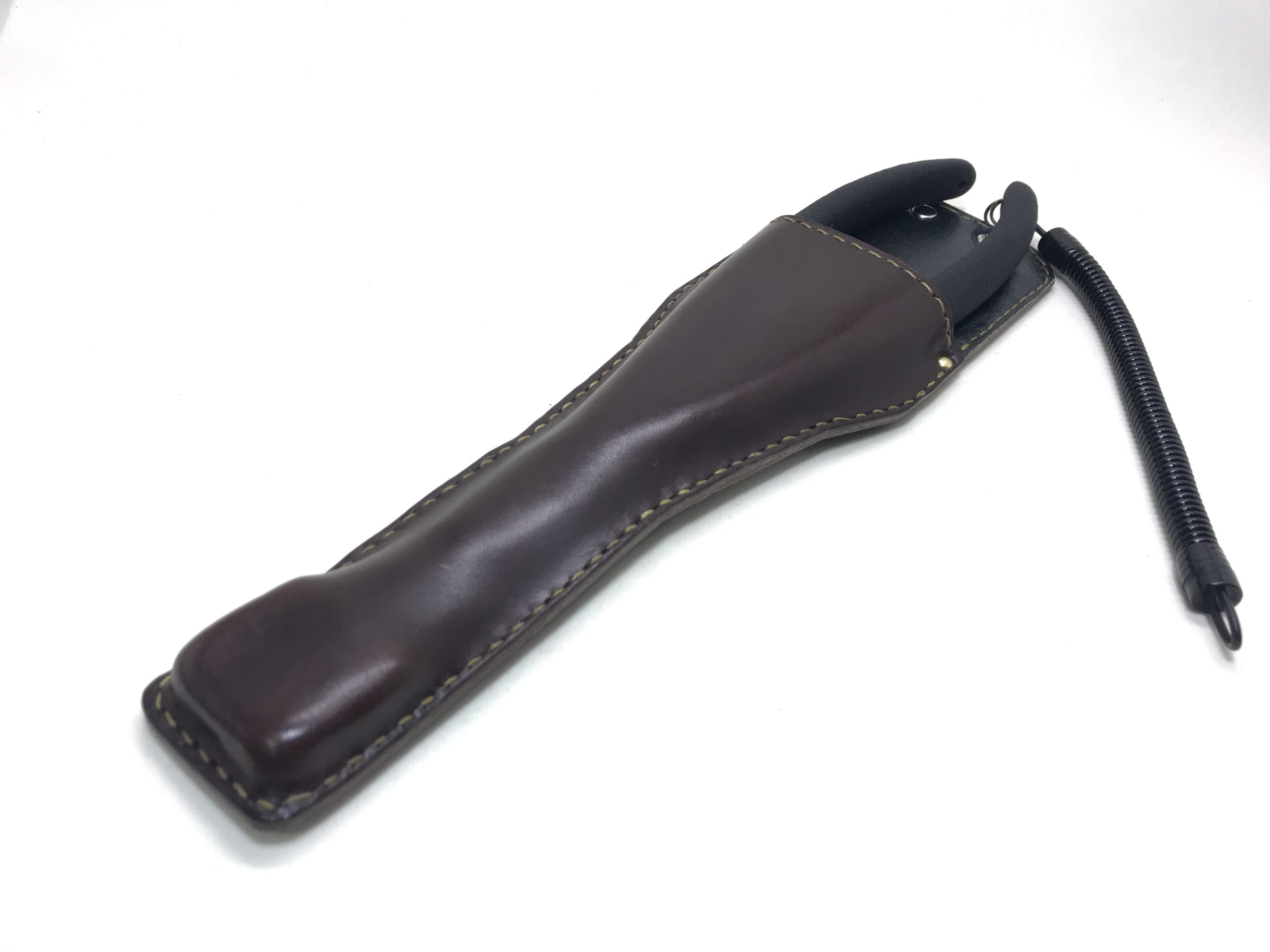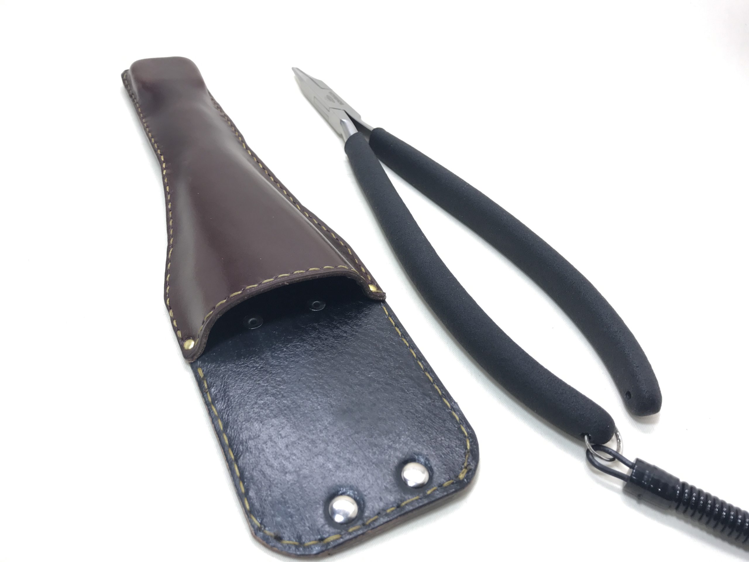 釣り道具ペンチケース 創作革小物/スマホケース 2020.09.24 釣り道具のペンチホルダーのご依頼です。 とても長い特殊なペンチで常に腰からぶら下げてお使いになります。1番ダメージの大きそうな先端部分には革を何層にも重ねて、箱型の先端差しを製作しました。アルミも補強で入れておりますのでそう簡単には破れないと思います。