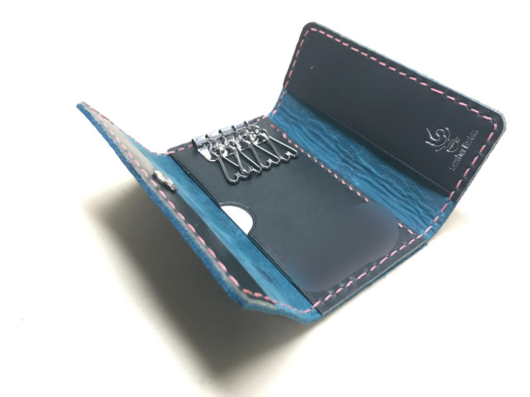 三つ折りキーケースにカードポケットをお付けしました。