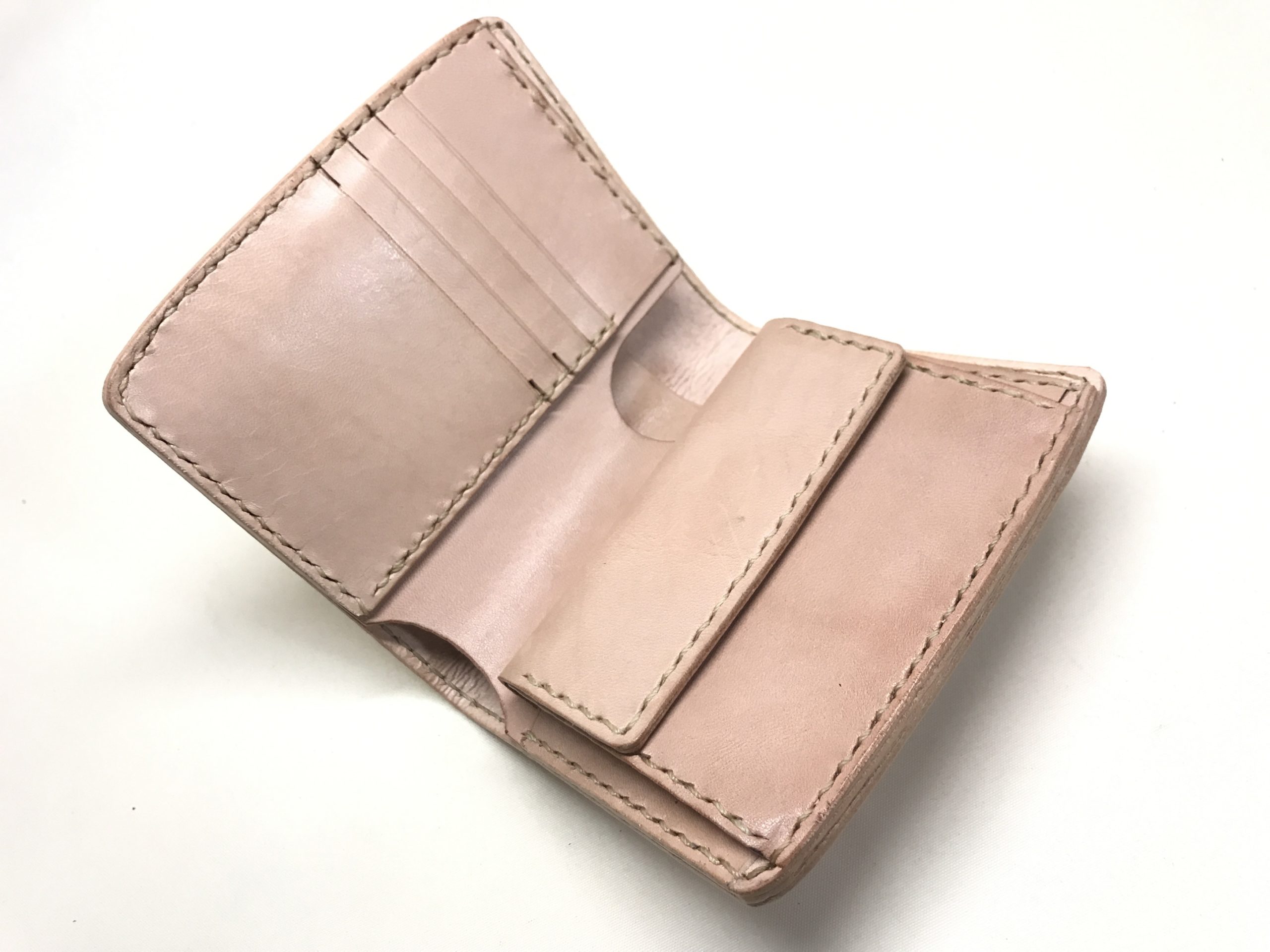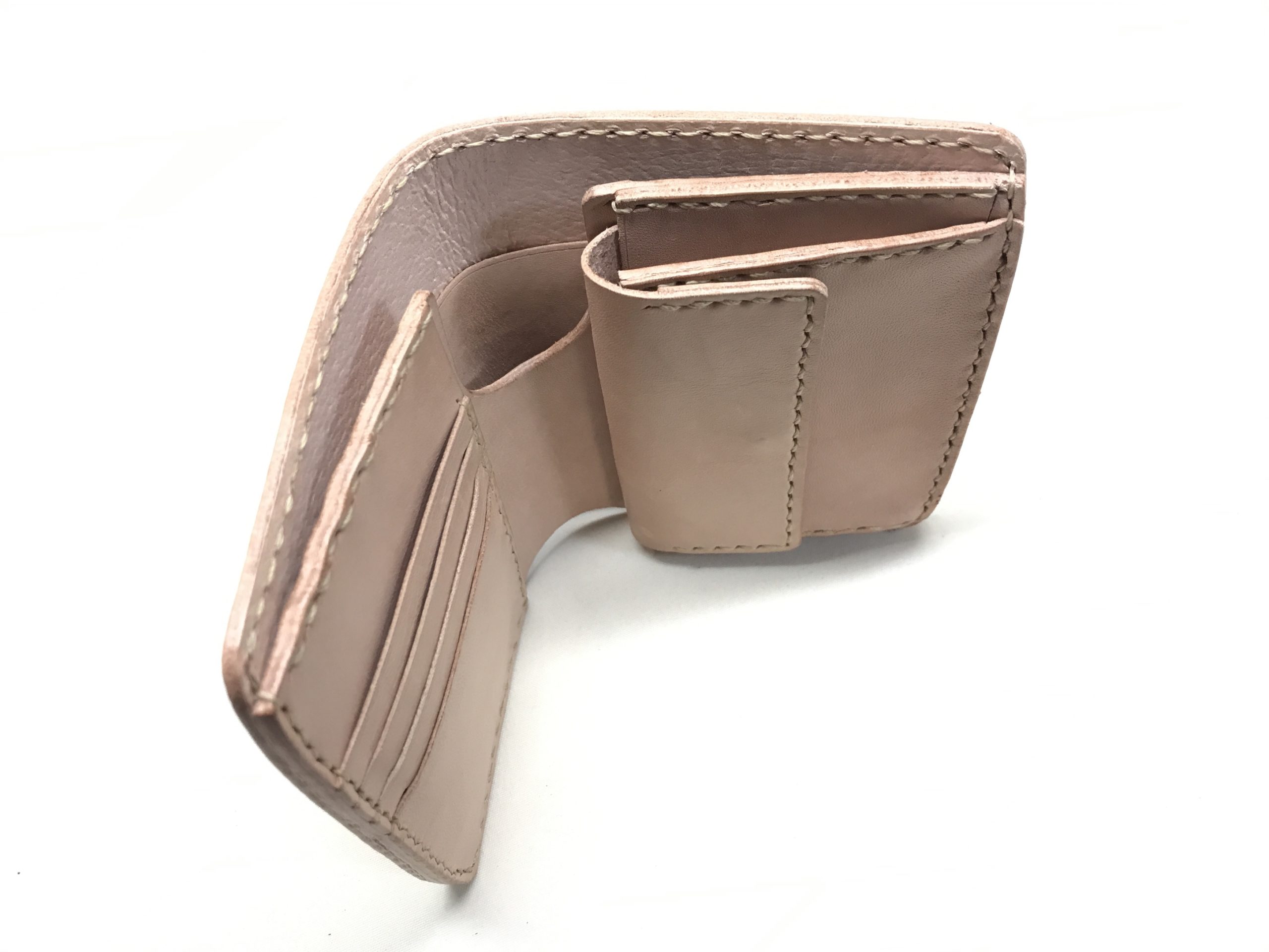 肌色無垢の #レザー を使った手縫いのお財布です。