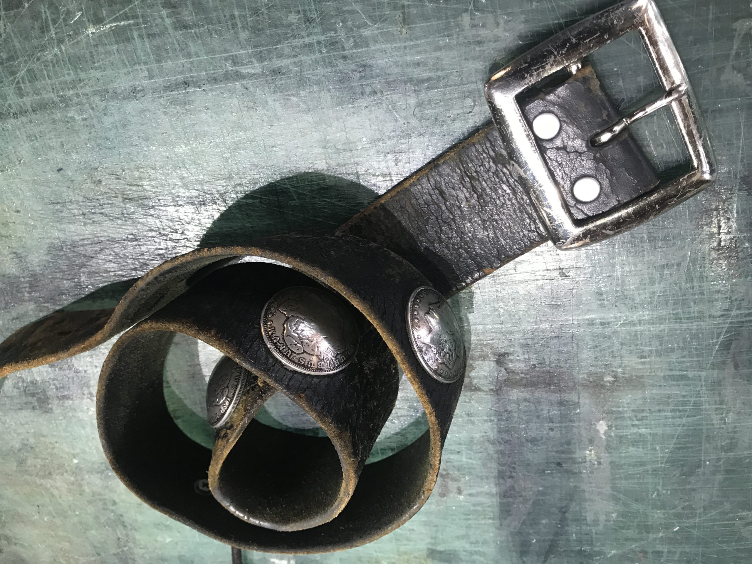 コンチョとバックルはそのまま流用しまして、再研磨しピカピカに光らせております。