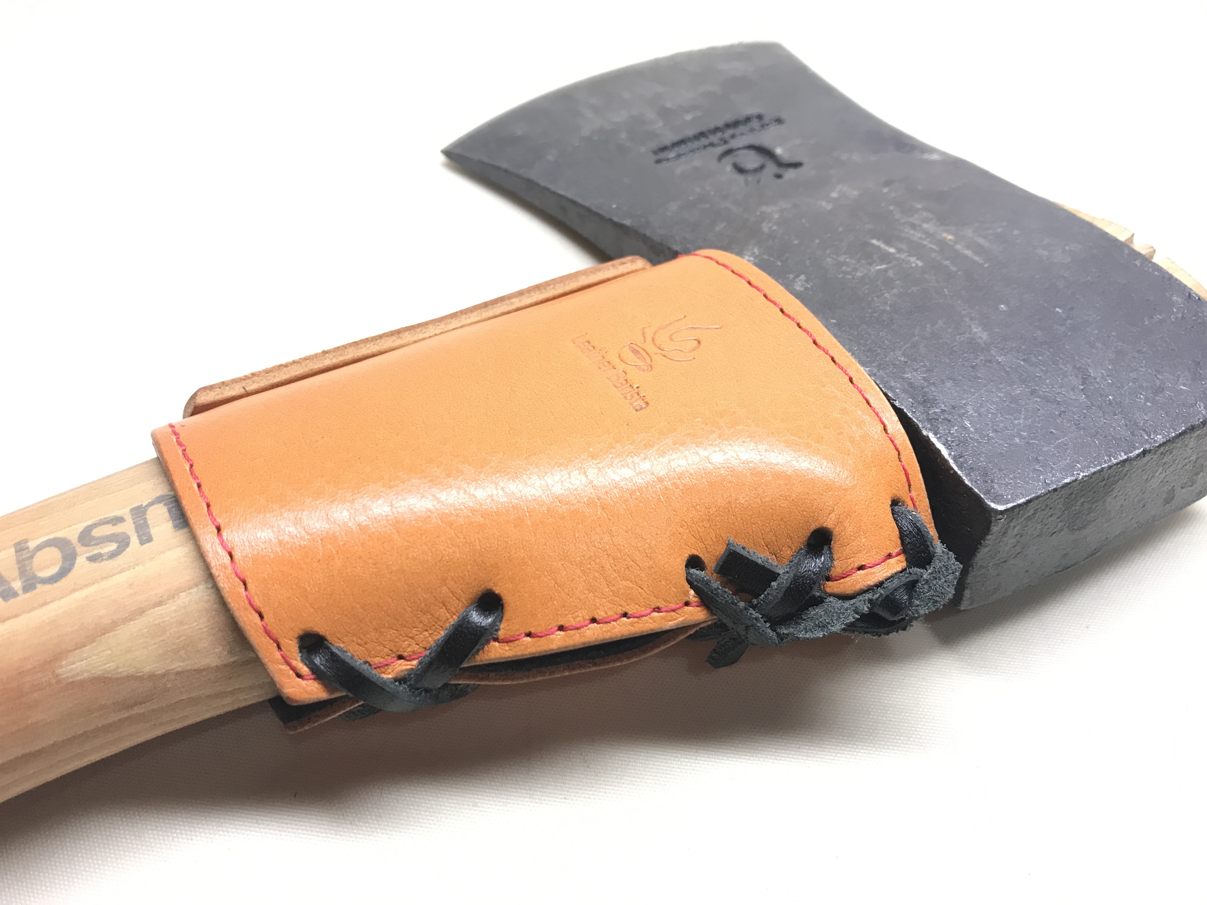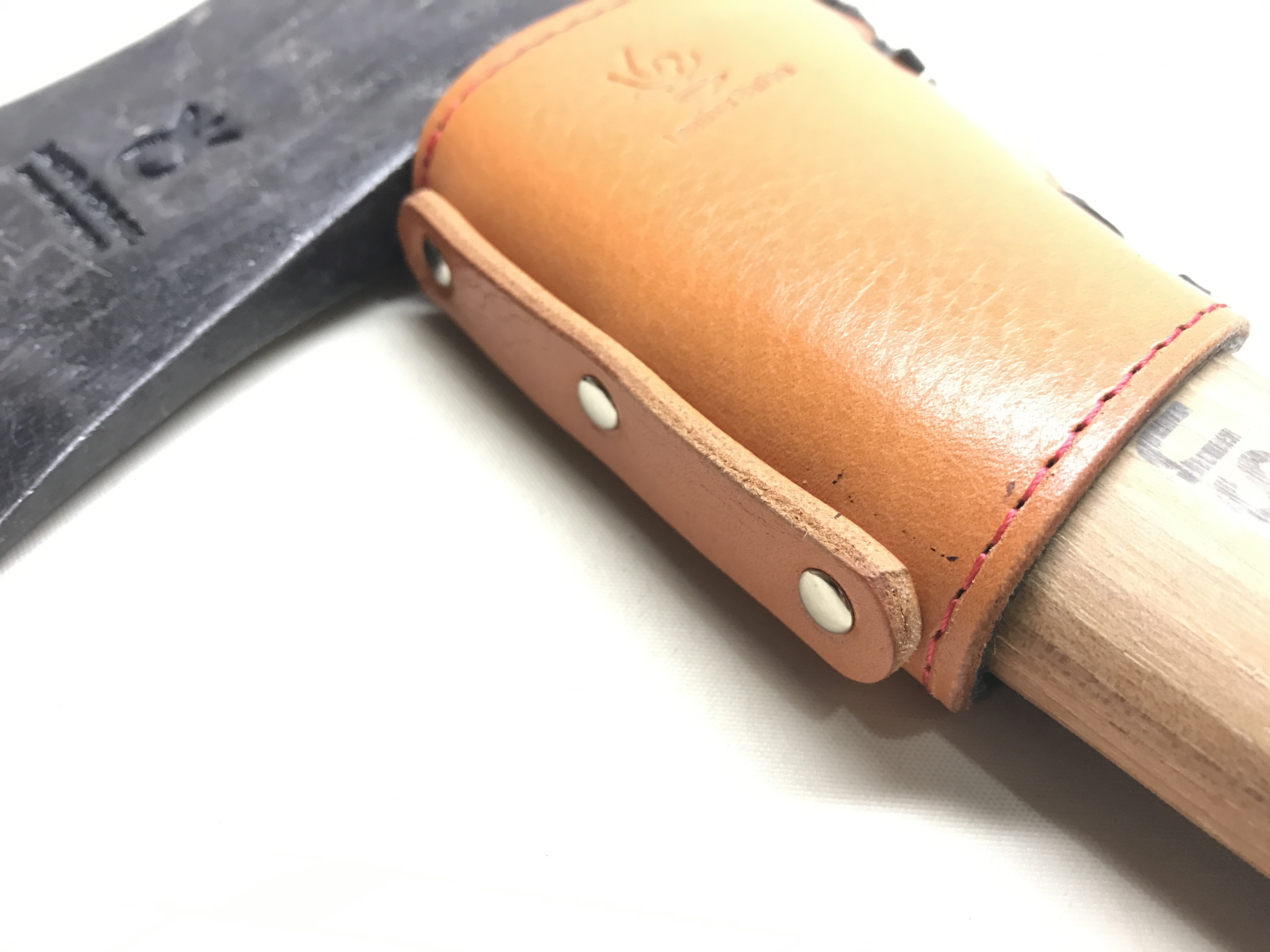 オノの束カバー 創作革小物/スマホケース 2021.06.23 去年あたりからキャンプ用品のオーダーメイドが増えてきております。 こちらはオノの束部分の保護カバーのオーダーを頂きました。 実物をお借りして製作させて頂きました!ありがとうございます!