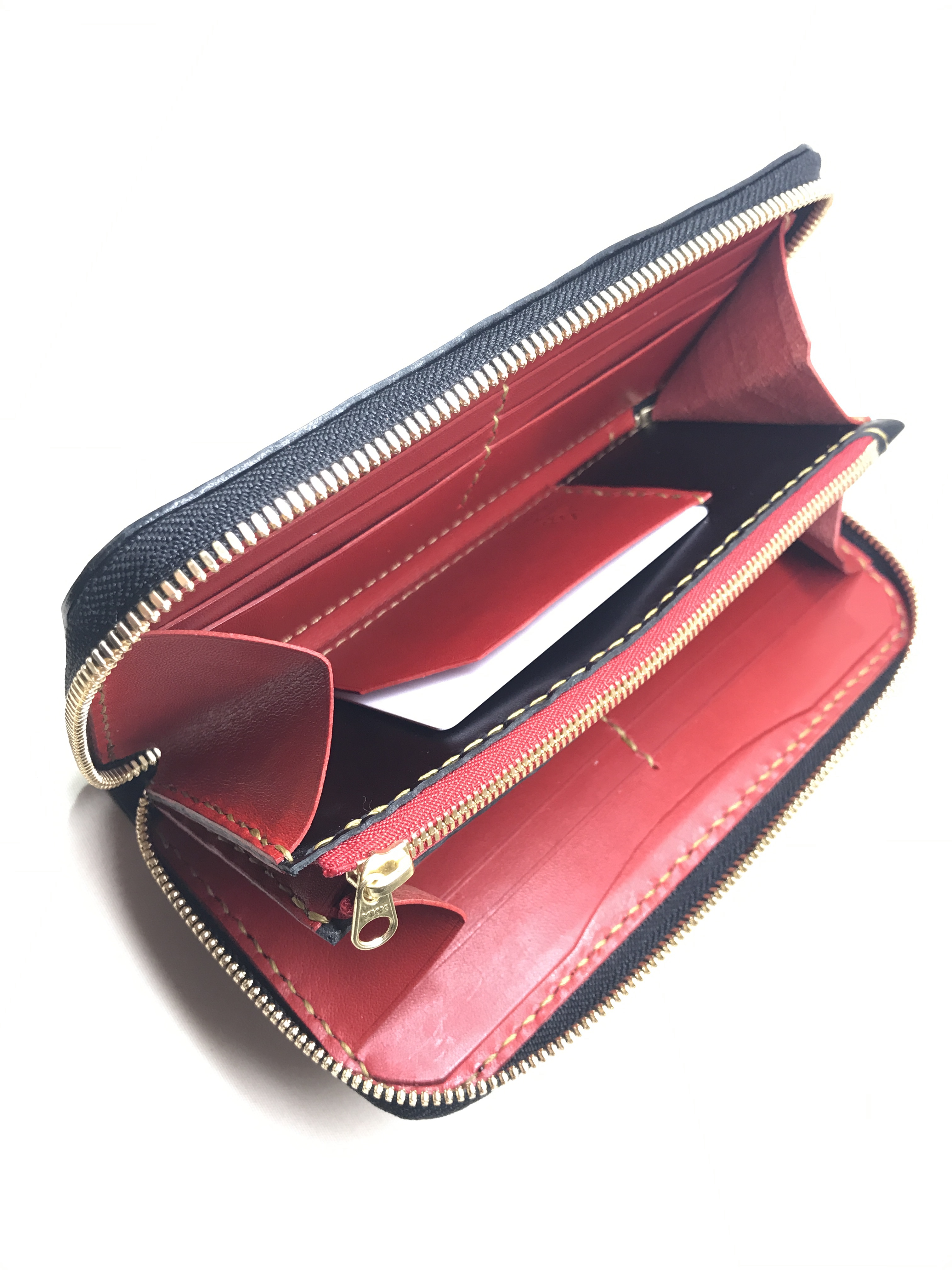 鏡面の様なレザー お財布 2021.06.30 コードバンという馬のお尻の #革 を使ったラウンドファスナー長財布です。 コードバン革の表面は鏡面の様な艶やかさがあって、物を置いてみると鏡の様に写り込みます。このおかげで、平面なのに革の奥深くまで色が感じられる雰囲気があります。 革の価値はとても高いので長い間お使い頂ける手作り製品にはおすすめです!