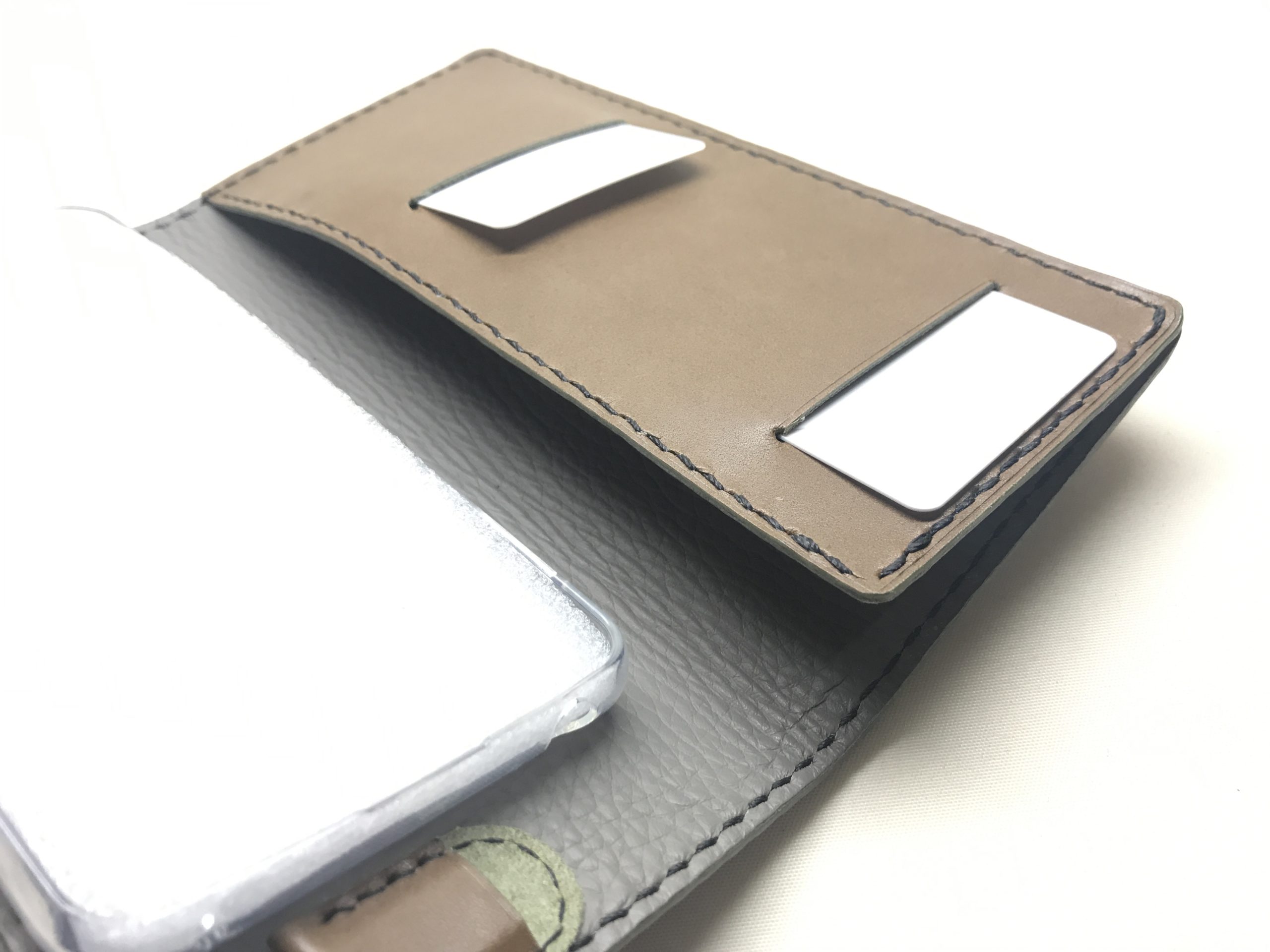 今回のご要望はカードが重ならない様に2枚収納、小さいサイズの付箋ポケットをつけて欲しいとのオーダーでした。
