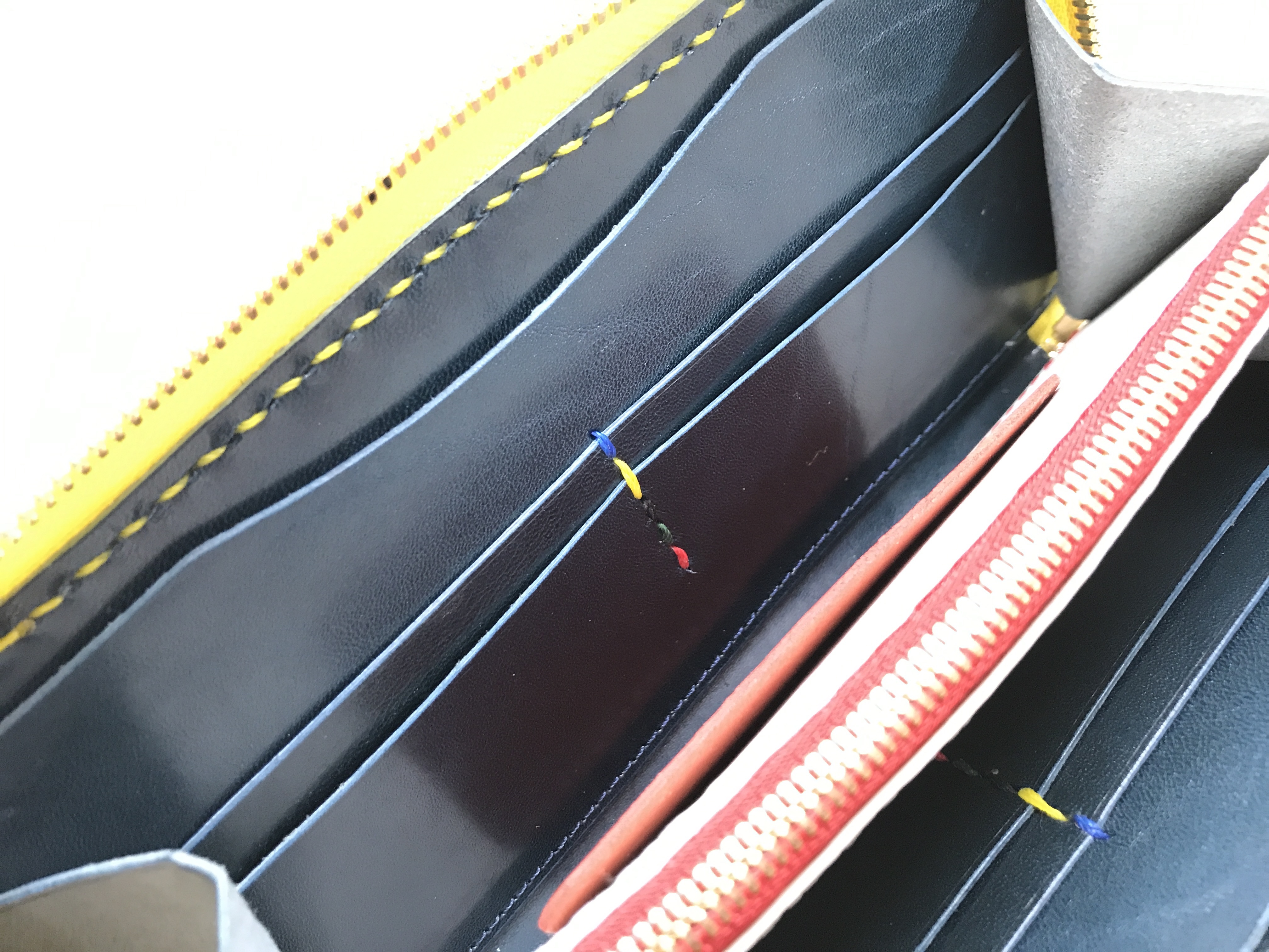 オリンピック長財布 お財布 2021.07.23 一昨年のオーダーですが、オリンピックを記念してお財布のオーダーを頂きました! 五輪カラーでステッチを一つ一つ変え、小銭入れは日の丸をイメージした配色に! ファスナーにも明るい色を使うことで、バッグの中でも見つかりやすくなってます! ご注文ありがとうございました!
