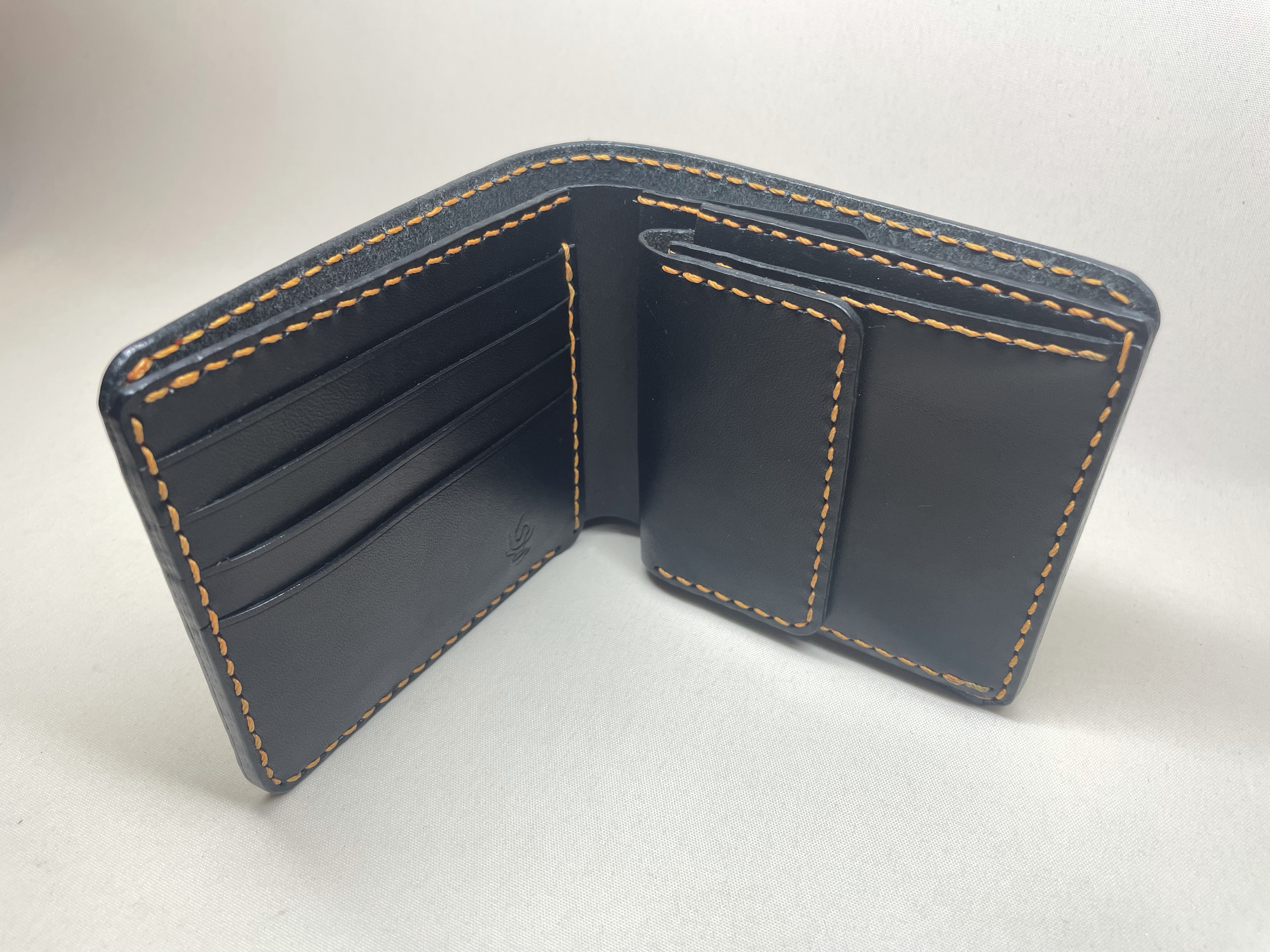 ヒアリングから丈夫な方が良いとの事でして、少し厚みを増したヌメ #革 にて二つ折り財布をお作り致しました。
