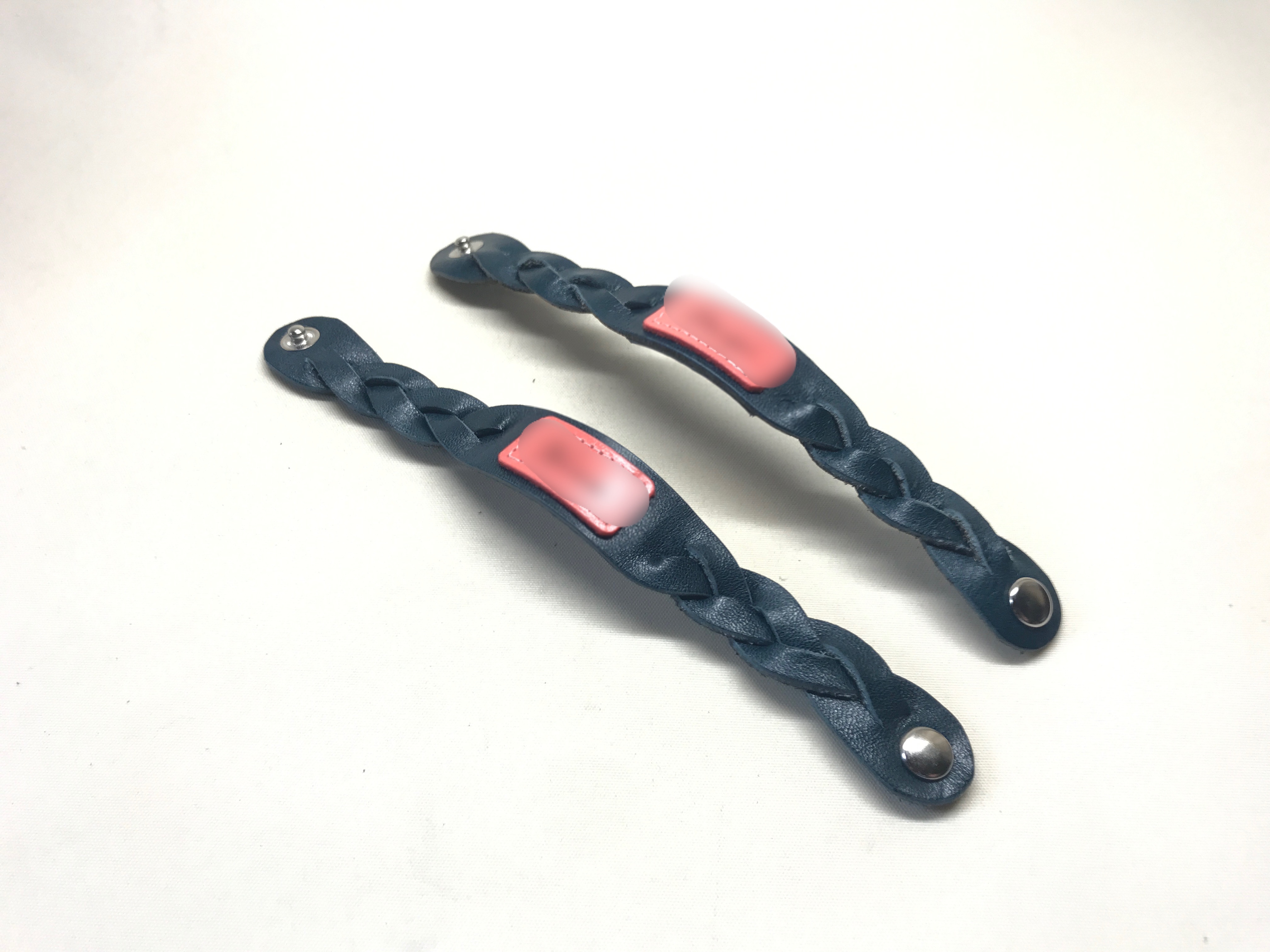 ペアブレスレット 創作革小物/スマホケース 2021.09.20 ヌメ #革 編み込みのペアブレスレットです。ネームタグを縫い付けました!シンプルに見えて、手の込んだ作りも引き立ちます! 大切な人と #レザー を通して通じ合って頂けるように心を込めてお作りしております。