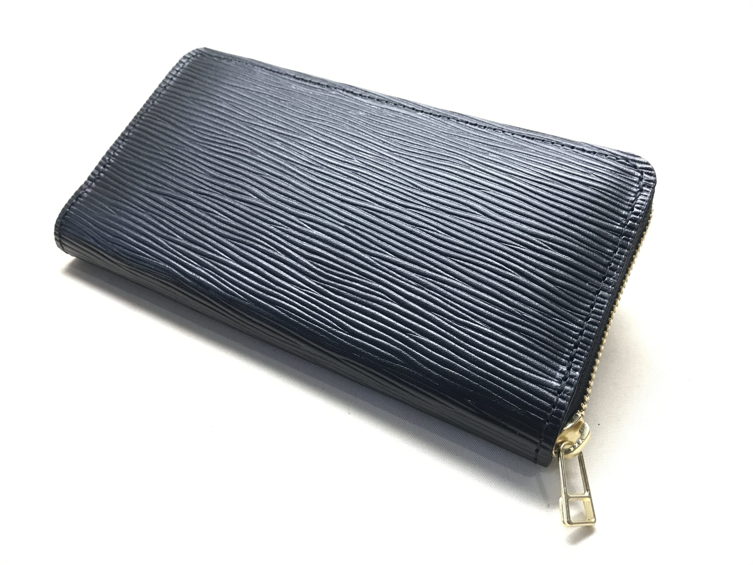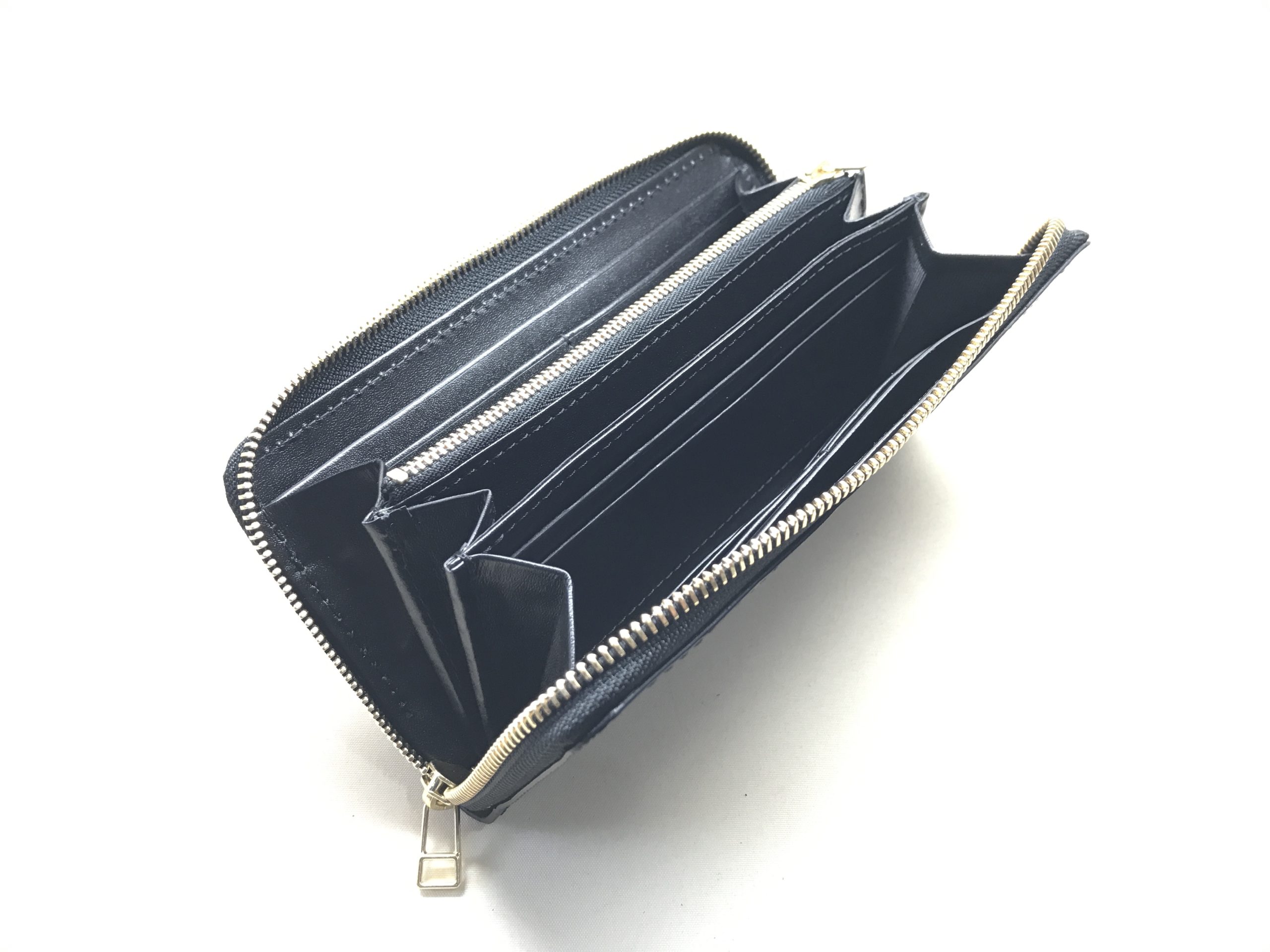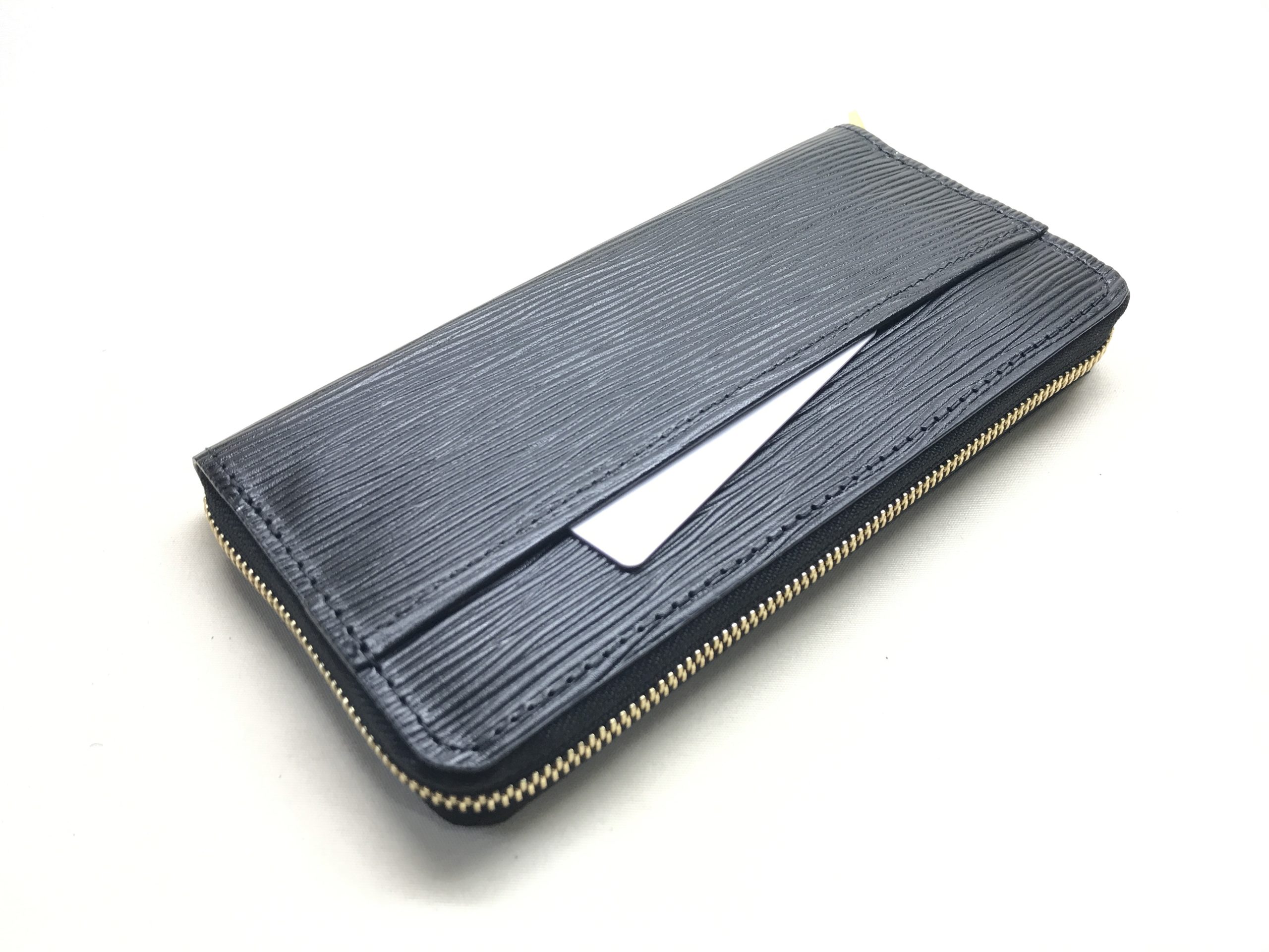 波状の型押し牛 #革 を使用したラウンドファスナー長財布です
