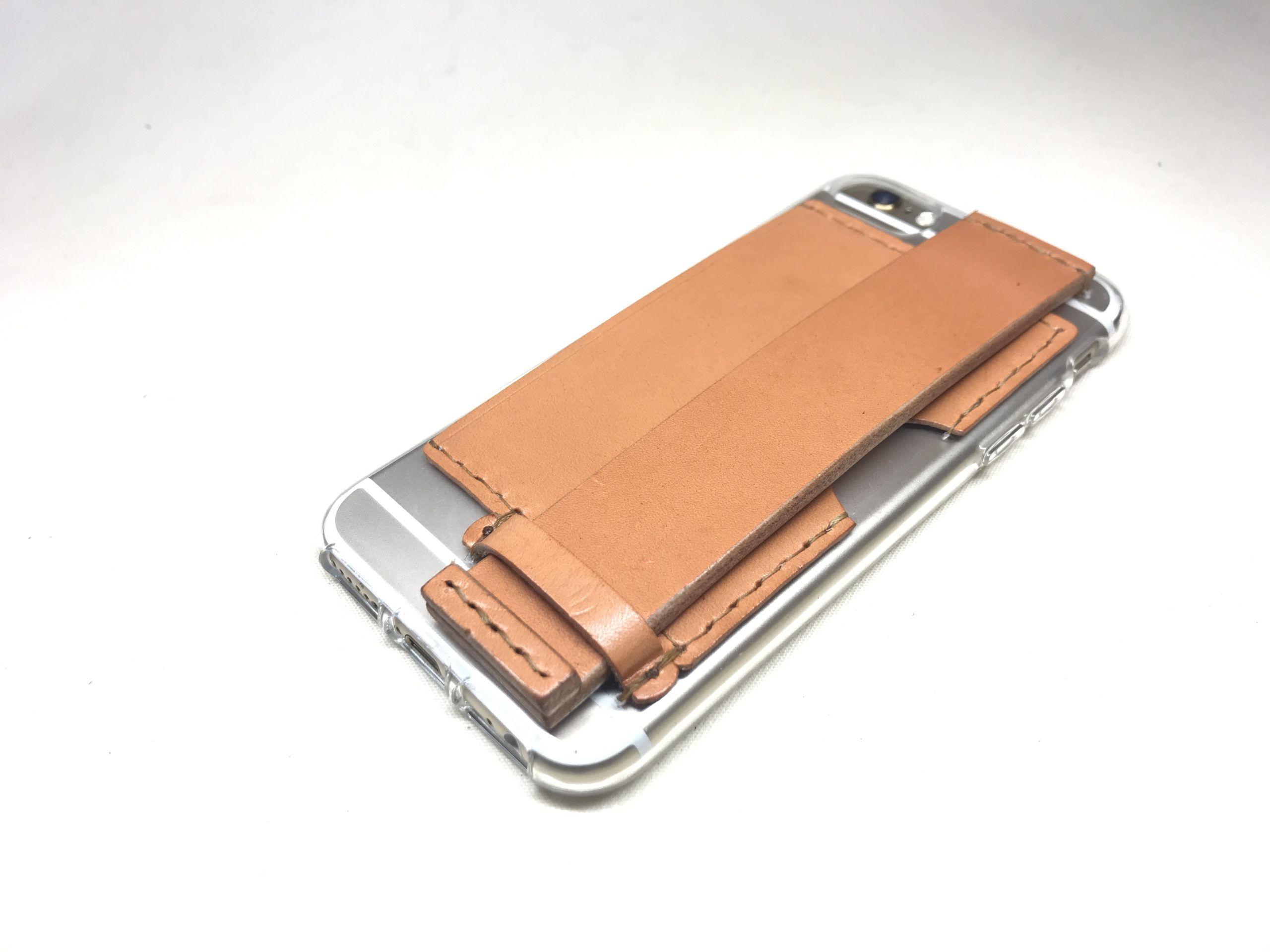 iPhoneケース 創作革小物/スマホケース 2021.12.14 iPhoneの樹脂ケースに直接グリップとカードポケットを縫い付けた #革 仕様のケースをオーダー頂きました!ありがとうございます😊 私も使っておりますがとても便利で手離せません!!👋📱