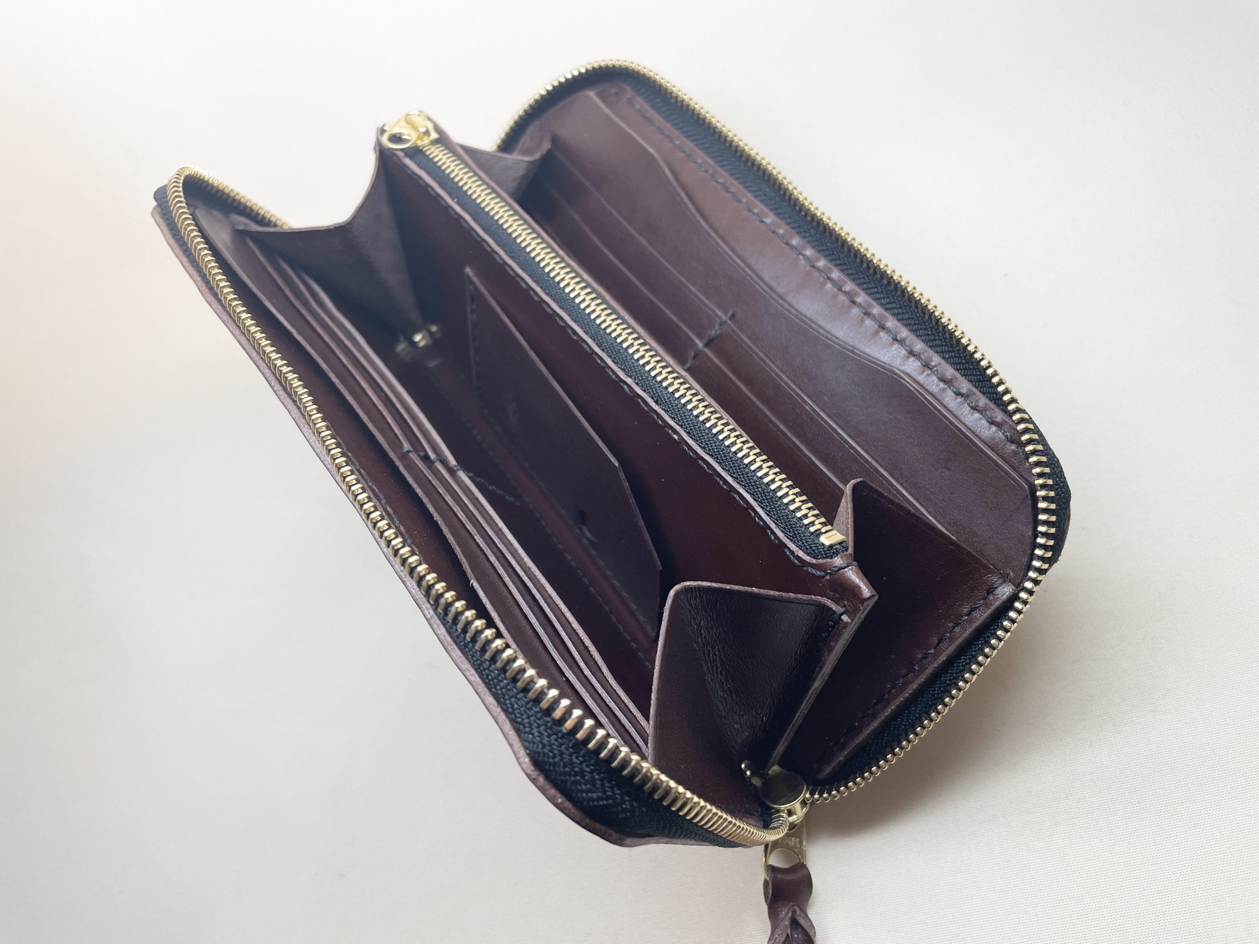 チョコ色のヌメ #革 を使用したラウンドファスナー長財布です☺️