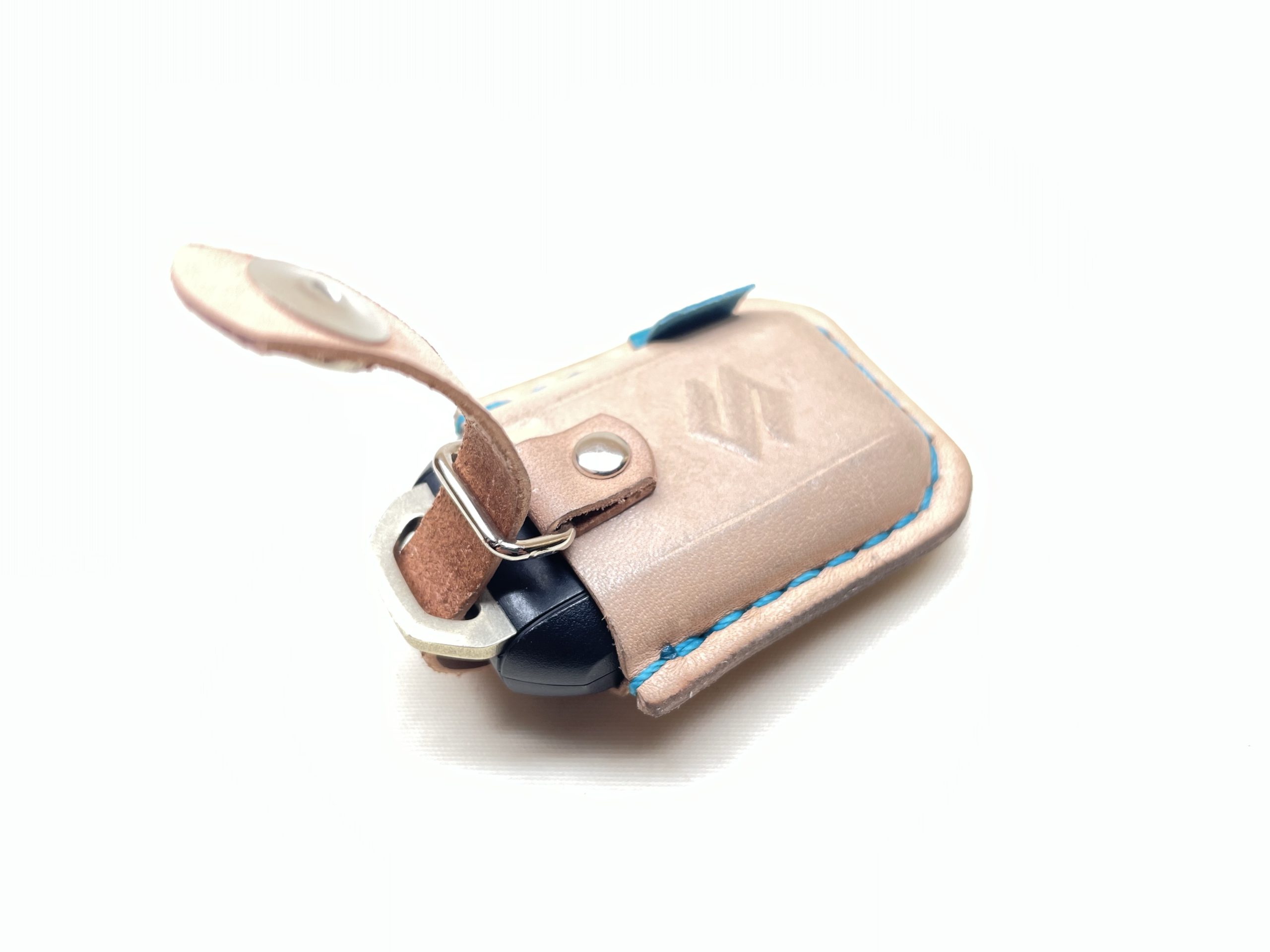 車のスマートキーカバー 創作革小物/スマホケース 2022.06.08 車のスマートキーケースのご注文を頂きました😊ヌメ革でしか出来ない特殊な製法で立体的な型を作り出します。数日かけてじっくりと仕上げていくのでとても手間はかかりますが、その物だけのオンリーワンなケースを仕上げる事ができます☺️ボタンの配置や仕組みなど、小さい小物になる程沢山の試行錯誤が必要となりますのが、お客様にご満足頂ければと価値を高める為に企業努力をしております😊