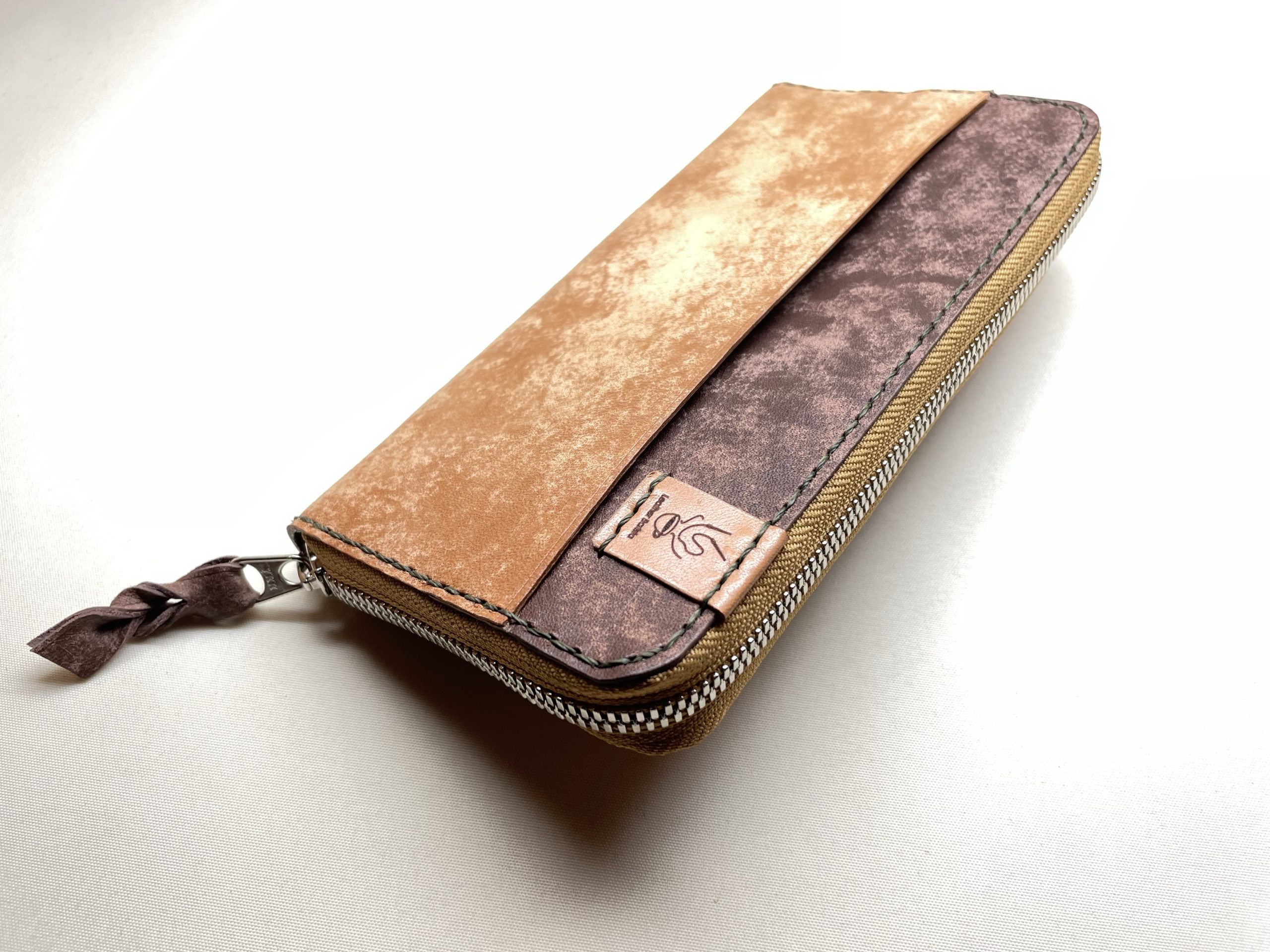 表面をほんの少しだけ毛羽出せた #革 を使ったラウンドファスナー長財布です
