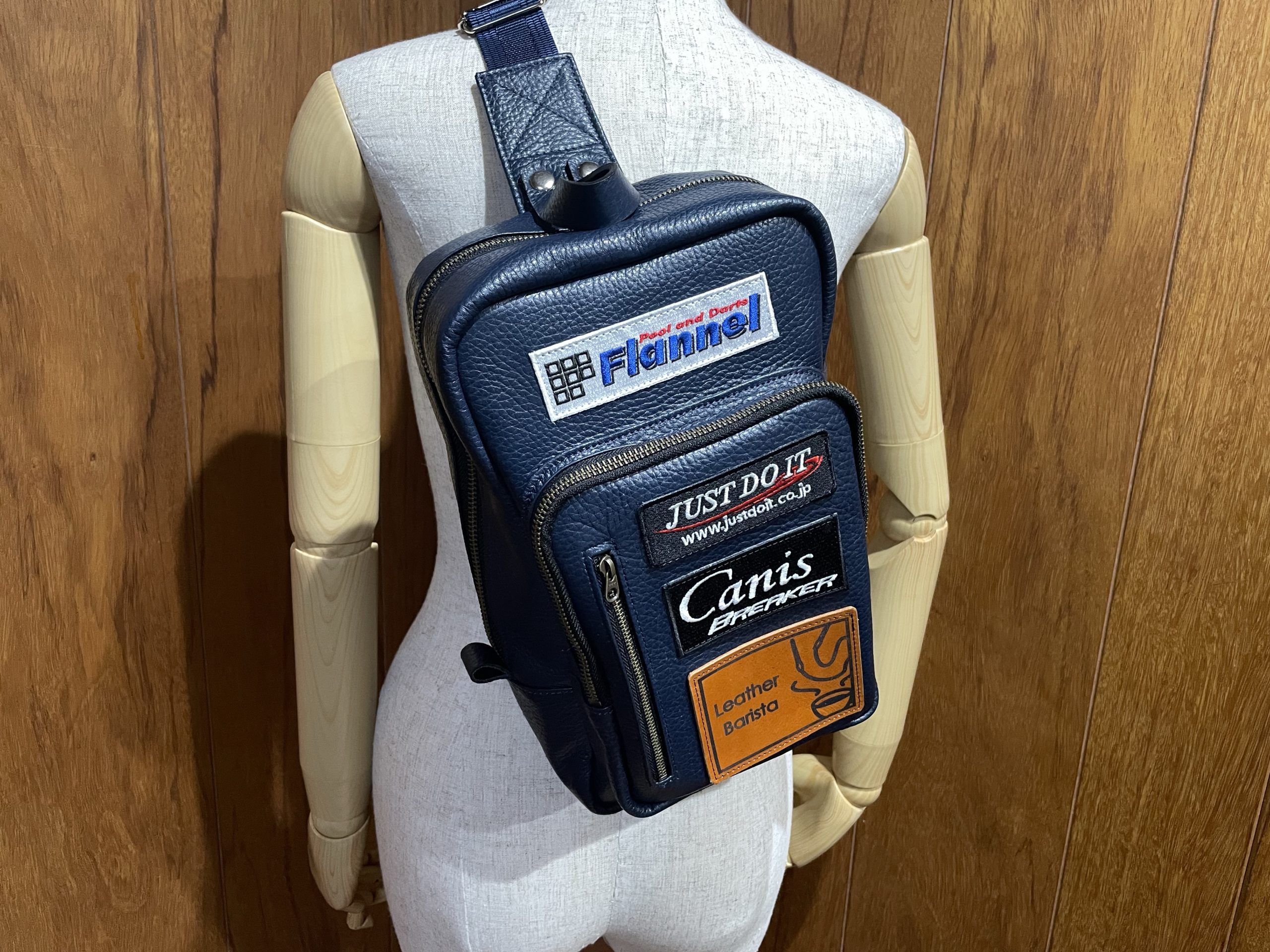 ボディバッグです バッグ/ワーク・シザー 2022.07.10 お客様の持ち込みのワッペンを縫い合わせたボディバッグのご依頼を頂きました☺️収納ポケットもお客様に合わせてお作りし、とても喜んで頂けました!ご注文ありがとうございます😊