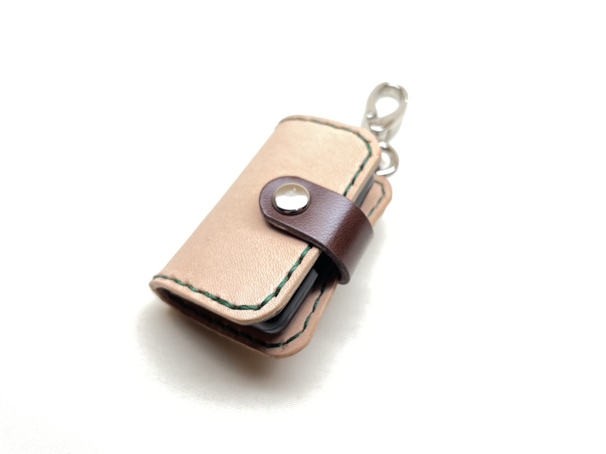 スマートキーケース 創作革小物/スマホケース 2022.07.21 車のスマートキーケースのご注文を致きました☺️バイクの鍵もぶら下げるとの事で丈夫な金具を使いました!車種に合わせた樹脂ケースを使いますので多様にご注文承ります👍小物ポケットもありますので交通安全のお守りを入れてはいかがでしょう☺️