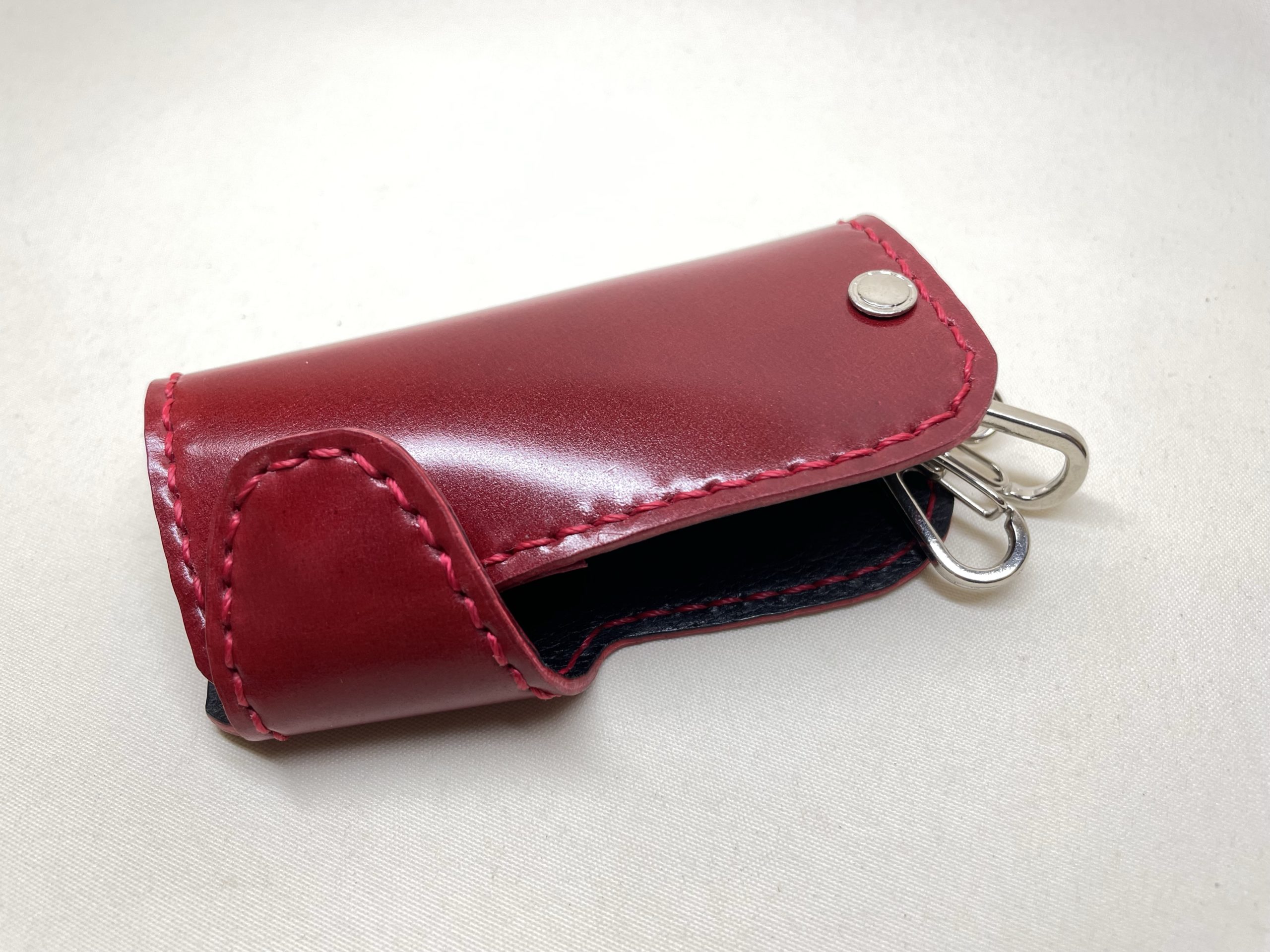コードバンのスライドキーケース 創作革小物/スマホケース 2022.09.29 鍵がシュッと出せてシュッと収納できる当店の人気のあるスライドタイプのキーケースです☺️艶が美しい馬の希少部位のコードバンを贅沢に使いました!金具はより丈夫にとナスカンを使ってます!